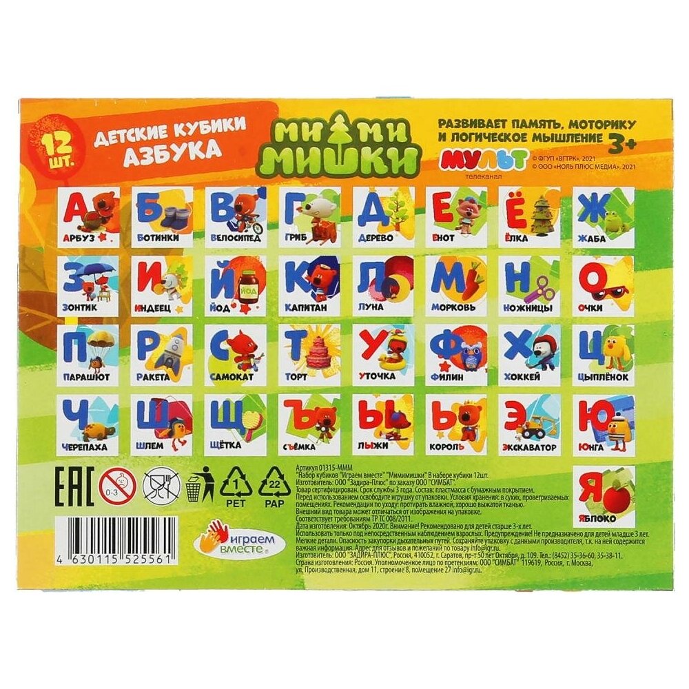 Набор кубиков Играем вместе 12 штук, Мимимишки, Азбука (01315-MMM)