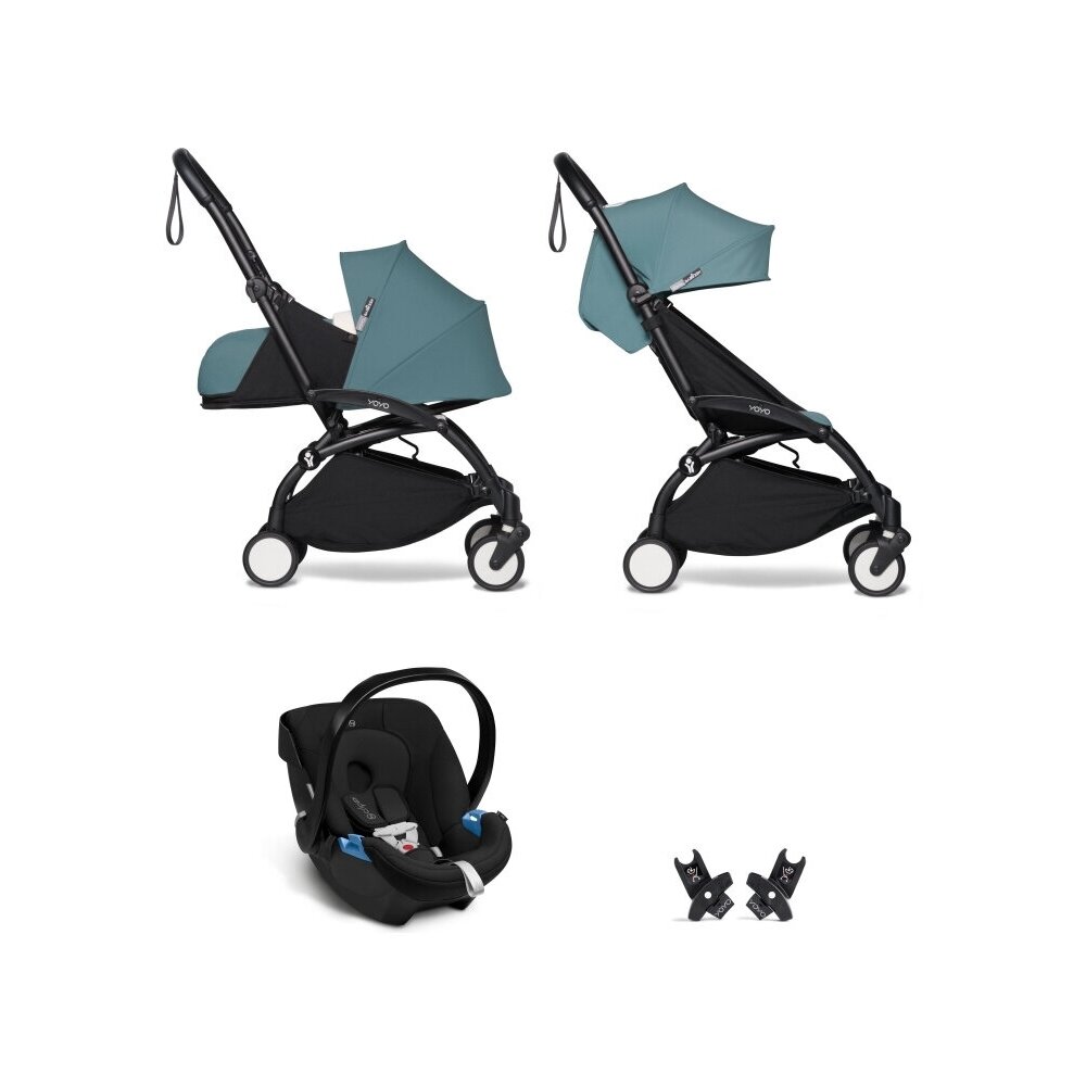 YOYO2 BABYZEN Коляска 3 в 1 с люлькой Newborn Pack, Aqua,Черная рама