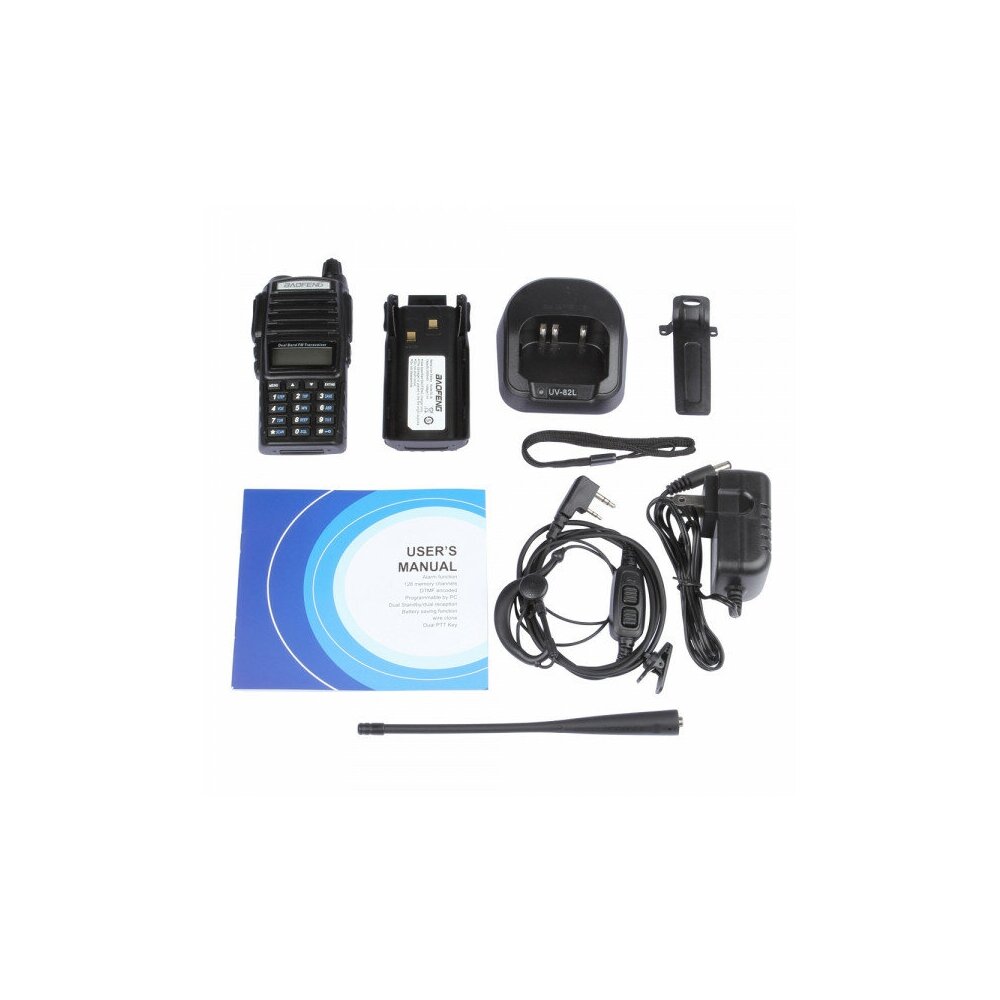 Портативная двухдиапазонная радиостанция Baofeng UV-82 – работает в частотах 136-174 МГц и 400-520 МГц, следовательно, связать ее с любой радиостанцией LPD и PMR диапазона не составит никакого труда.Максимальная мощность составляет 5 Вт, аккумулятор увеличенной емкости (2800 mAh). Главным новшеством радиостанции можно считать двойную кнопку PTT, благодаря которой можно производить передачу сигнала на любой из двух выбранных активных частот.Из основных функций Baofeng UV-82 присутствует голосовая активация передачи (VOX), экономия батареи, благодаря чему Вы сможете оставаться на связи максимально долго. Приятным дополнением Baofeng UV-82 следует отметить наличие довольно яркого фонарика, возможность прослушивания FM-радио, и наличие гарнитуры с двойной кнопкой РТТ в комплектации.полный Комплект:Радиостанция Baofeng UV-82АнтеннаАккумулятор BL-8, Li-ion 2800 мАч, 7,4 ВЗарядное устройство "стакан"Адаптер питания для з/у от сети 220 ВГарнитураКрепление на пояс - клипсаШнурок на запястьеИнструкцияХарактеристики:Емкость АКБ (мАч):2800Тип диапазона частот:VHF UHFДиапазон частот (MГц):136 - 174 / 400 - 520Максимальная выходная мощность (Вт):5Формат аккумулятора:свой собственныйТип АКБ:Li-IonКоличество каналов:128Количество раций в комплекте:1Шаг сетки частот (кГц):2,5/5/6,25/10/12,5/20/25Вид модуляции:FMРазмеры, мм:110 x 58 x 32Вес (гр):130Диапазон рабочих температур (С):-20 +60Основные особенности:CTCSS / DCSФункция Alarm (тревога)Функция OFFSET (сдвиг частоты для работы с репитерами)Функция сохранения заряда батареи (SAVE)Функция «BCLO» (Busy Channel Lockout) (запрет