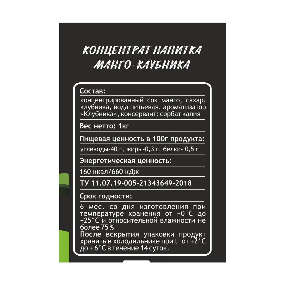 • Состав концентрированный сок манго, сахар, клубника, вода питьевая, ароматизатор "Клубника", консервант: сорбат калия