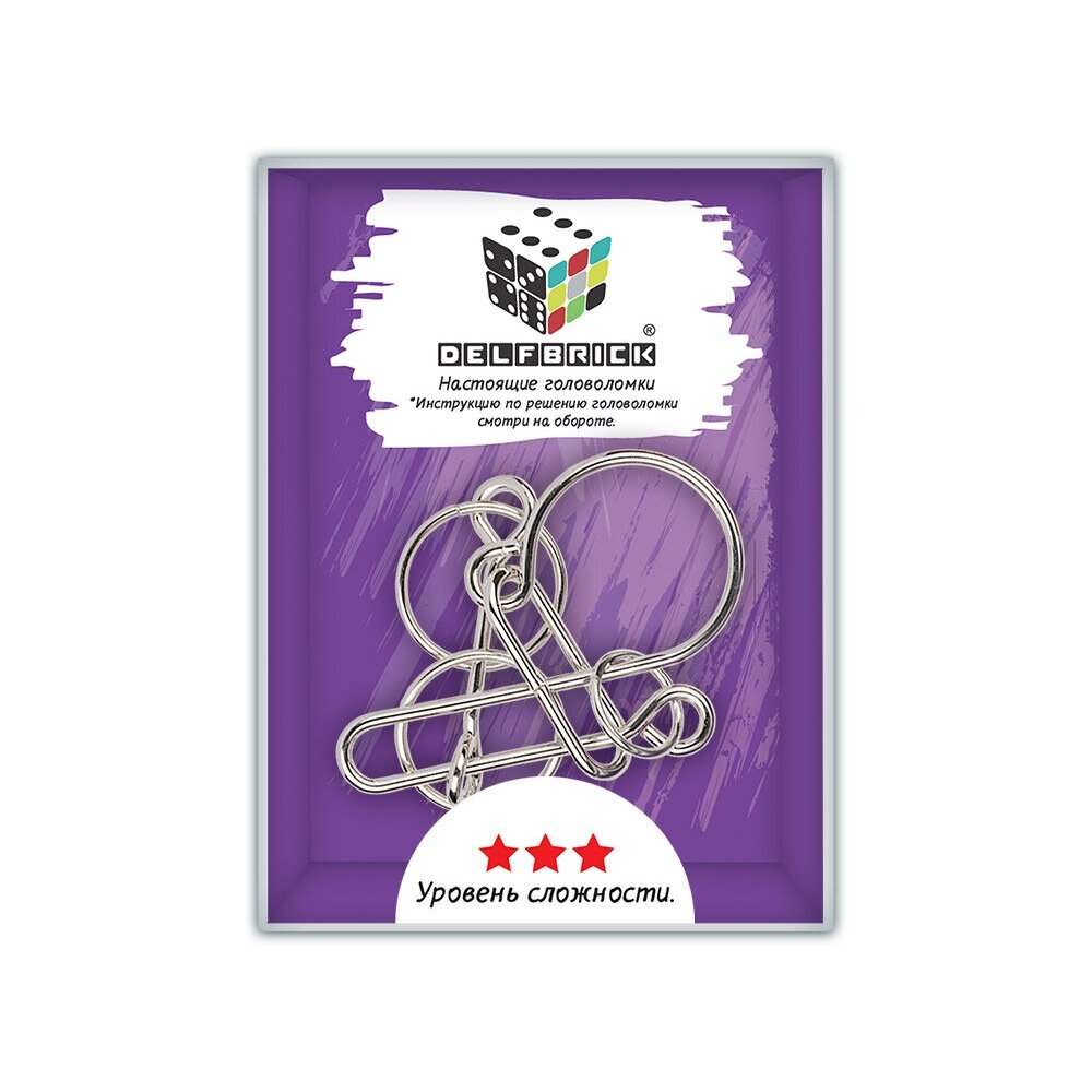 Головоломка - это игрушка, состоящая, как правило, из нескольких частей, которые надо разобрать и снова собрать, решив, таким образом, некую логическую задачу. Головоломки ТМ "DELFBRICK" - отличный тренажер для развития сообразительности и ловкости, логического мышления и терпения. Логические игры ТМ "DELFBRICK" - это занимательный досуг для взрослых и детей от 3 лет. Каждая головоломка изготовлена из качественных и нетоксичных материалов. В комплекте: стальные детали, сцепленные между собой. Упаковка: в прозрачный пластиковый бокс с вложенной в него этикеткой. Инструкция на оборотной стороне этикетки.