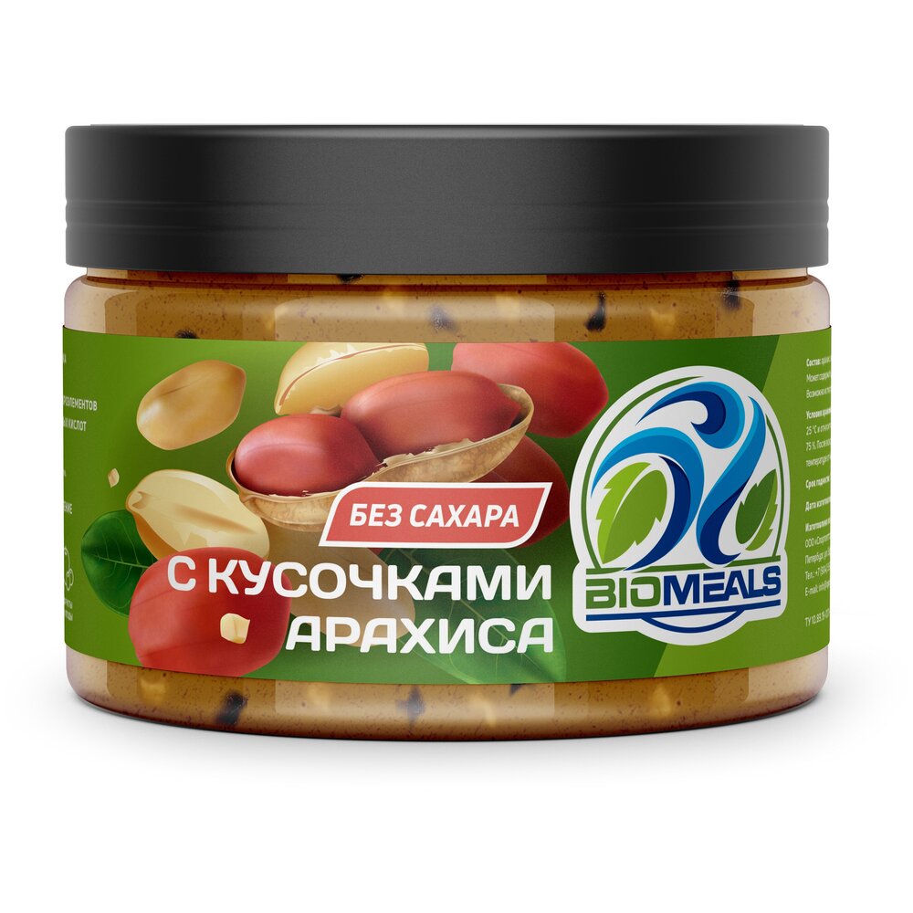 Biomeals арахисовая паста без сахара с кусочками арахиса, 250 грамм