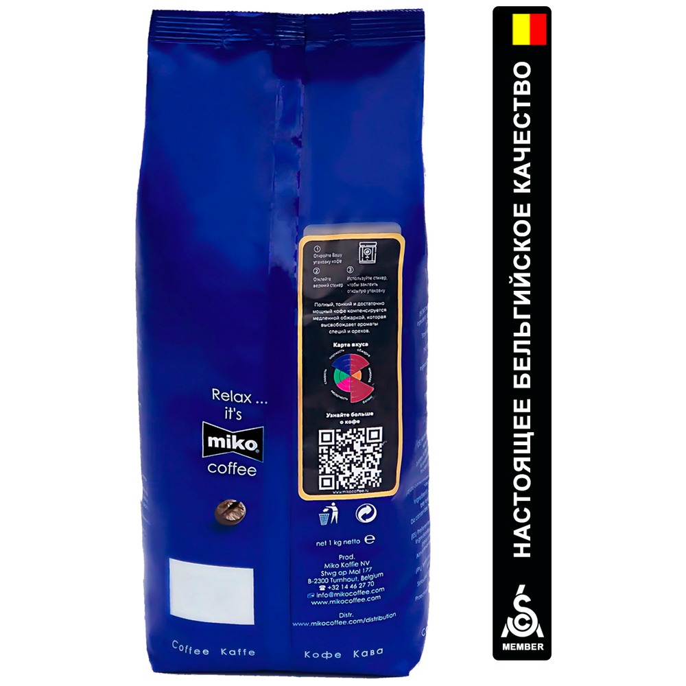 Бленд Арабики из Перу, Колумбии, Бразилии и Гондураса - 80% с Робустой из Индии – 20%. Высвобождение ароматов специй и вкуса орехов, происходит благодаря медленной обжарке зерен этого бленда. Кофе темной обжарки, по классификации – Full City. Зерно такой обжарки принимает чуть темный цвет и слегка маслянистую поверхность. Идеально подходит для приготовления кофе Капучино и кофе Латте. Специально для домашних и автоматических кофемашин. Отборная смесь кофейных зерен. Ровный, сбалансированный вкус и плотность напитка понравятся ценителям Капучино и Латте. Приготовленный напиток имеет умеренную сладость и слабовыраженную кислинку. Компания MIKO уже 200 лет занимается обжаркой и специализируется на производстве зернового кофе для автоматических кофемашин, как профессиональных, так и домашних. Высочайшие стандарты очистки и обжарки кофейных зерен, высокотехнологичное оборудование и мировые стандарты качества гарантируют долгий срок службы вашей любимой кофемашины. Miko Koffie является участником ассоциации specialty кофе SCA.