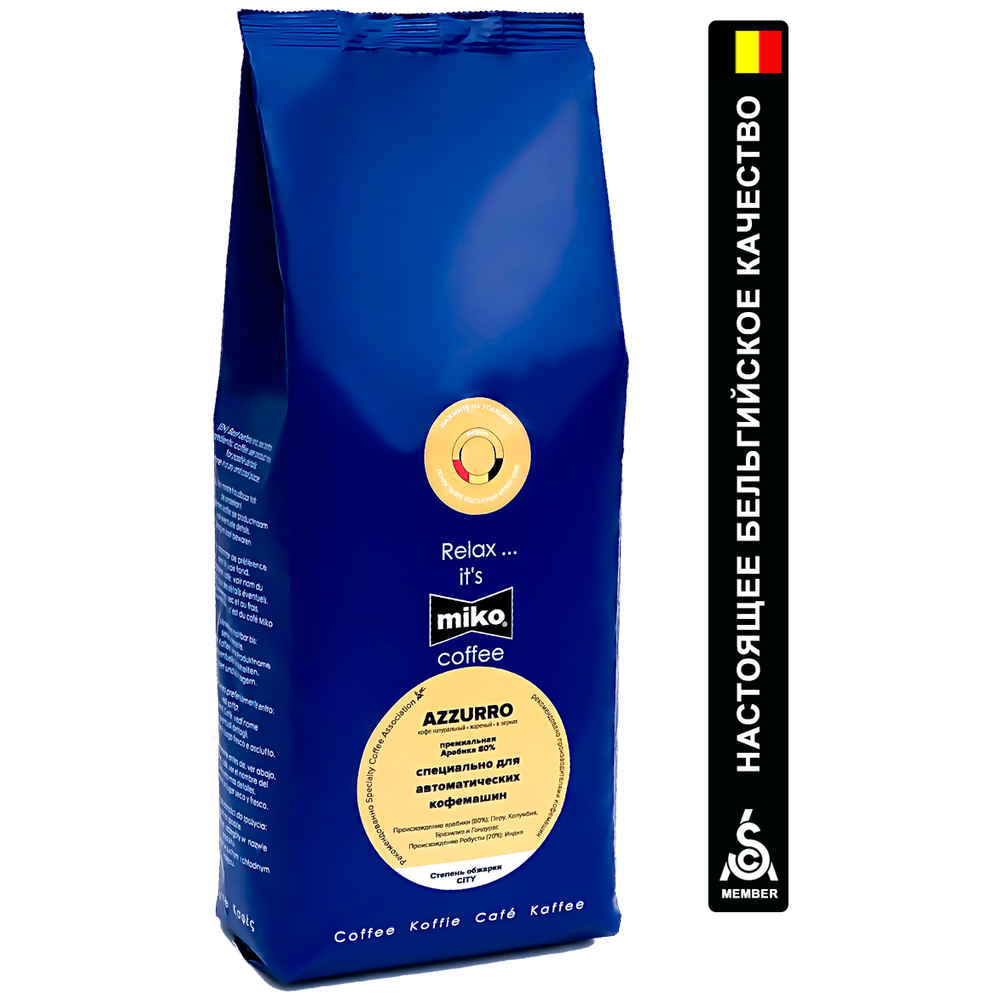 MIKO Azzurro. Кофе в зернах 1 кг. Для приготовления кофе Латте и кофе Капучино. Зерновой кофе для кофемашины