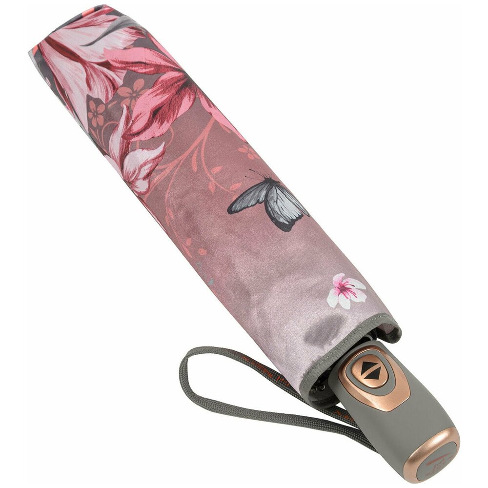 Женский зонт Frei Regen полный автомат, три сложения. Система антиветер. Стальные спицы с антикоррозионным покрытием и наконечниками из фибергласса. Диаметр купола: 104 см, длина сложенного зонта: 30 см, количество спиц: 10, вес: 490 г. Материал купола: 100% полиэстер, сатин. Красивая подарочная коробка.