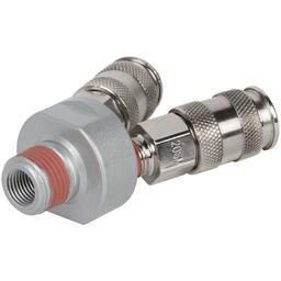 Разветвитель пневматический V-образный WIEDERKRAFT WDK-82MV используется совместно с компрессорным оборудованием для подключения двух пневмоинструментов. Изготовлен из стали. Оснащен двумя разъемами рапид тип "мама". Диаметр резьбы входного отверстия - 1/4". Технические характеристики пневматического разветвителя WIEDERKRAFT WDK-82MV Вид разветвитель Количество выходов 2 Входное соединение 1/4M Выходное соединение (фитинг) Рапид (EURO) Рапид (EURO) выход мама Размер резьбы на входе (блок) 1/4M Размер резьбы на выходе (блок) 1/4F