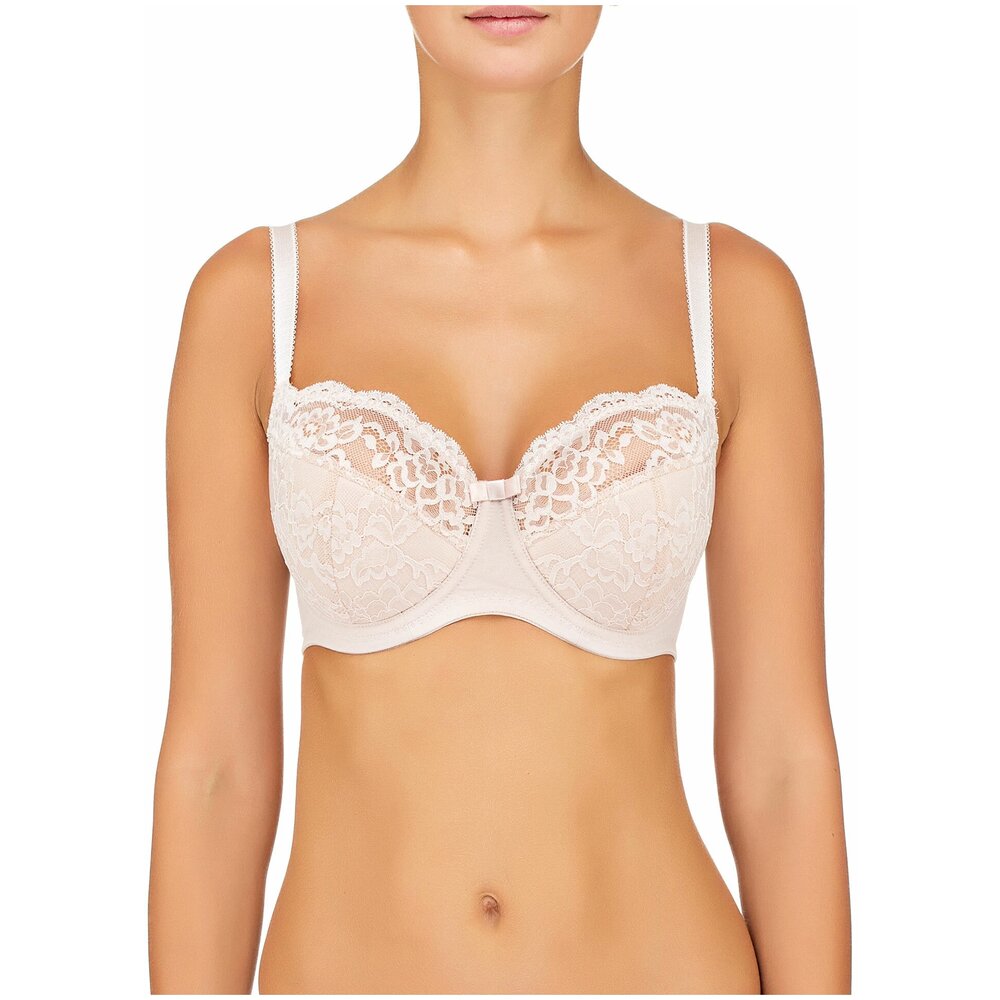 Бюстгальтер с мягкими чашками на каркасе. В основе чашки конструкция из трех деталей с диагональным членением. Чашки и центральная деталь выполнены из эластичного кружева. Нижние детали чашки и передняя часть стана продублированы хлопковой подкладкой. В боковой части чашки между кружевом о хлопковой подкладкой вработан усилитель из не эластичного капрона. Боковые детали стана из функционального эластичного сетчатого полотна. Бюстгальтер дополнен бантиком.