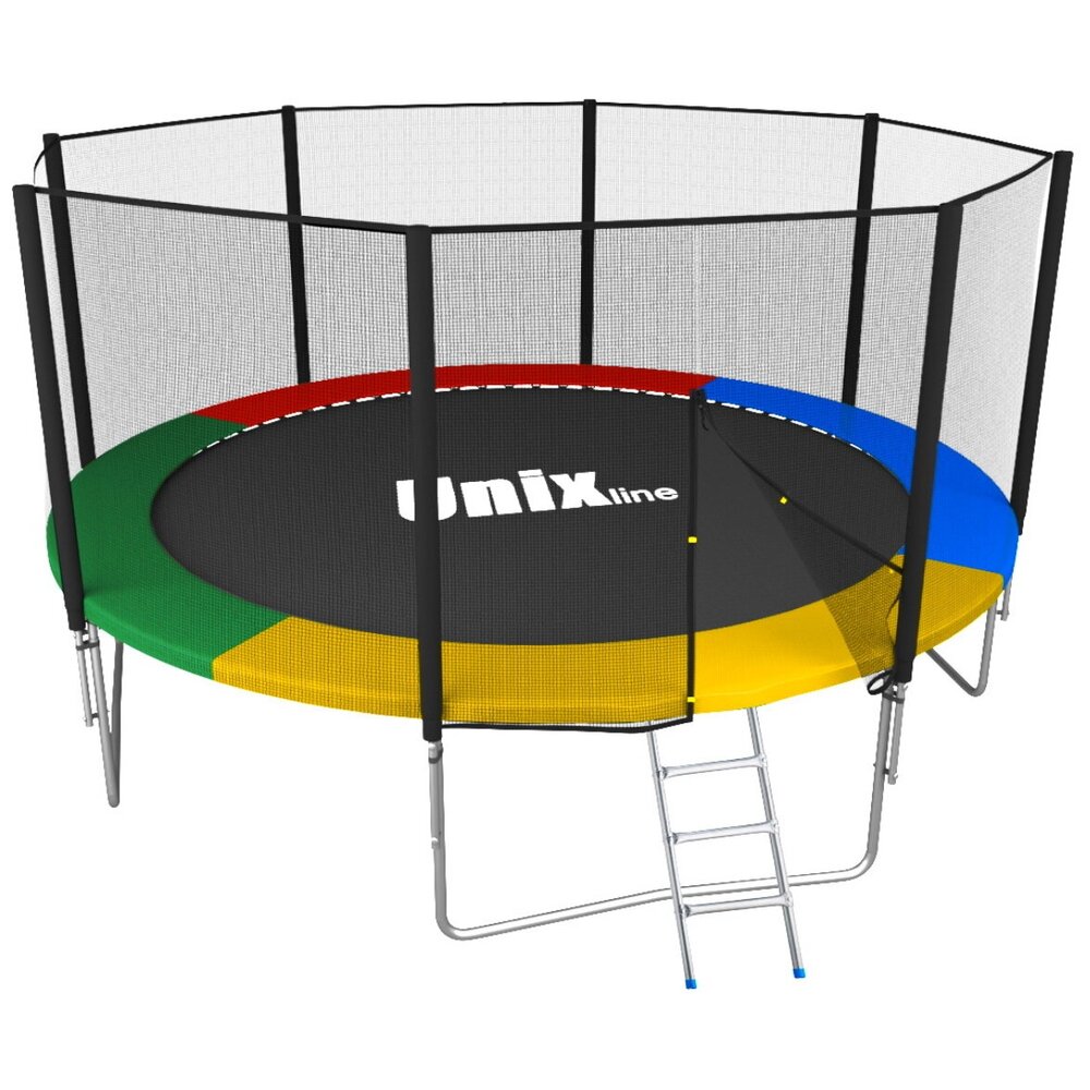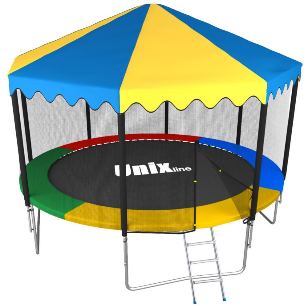 Каркасный батут Unix Line 12ft Simple Roof (outside) 366х366х269 см мультиколор (с сеткой, лестницей и крышей)