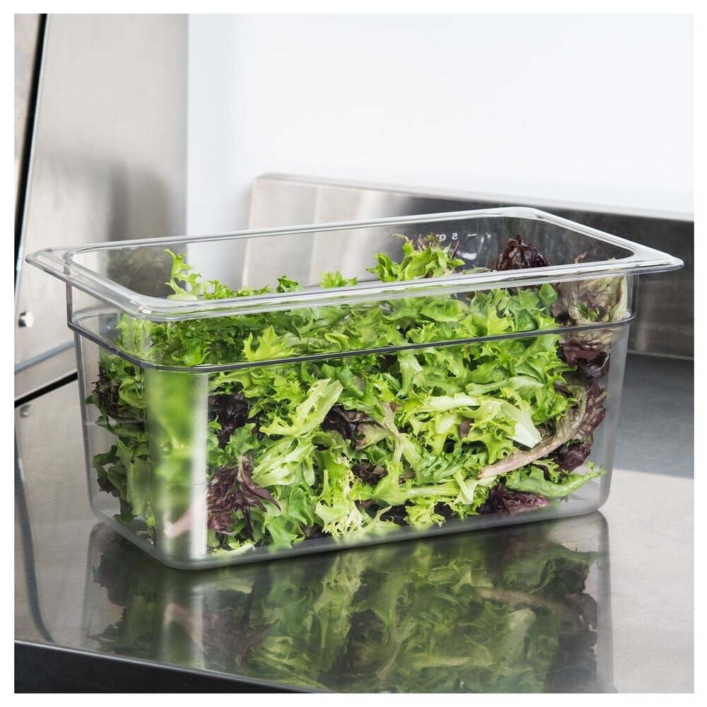 - Дополнительная информация термостойкость от -40 до 99 °С; подходит для мытья в посудомоечной машине; штабелируется; соответствует стандарту Gastronorm EN 631-1; цвет: прозрачный