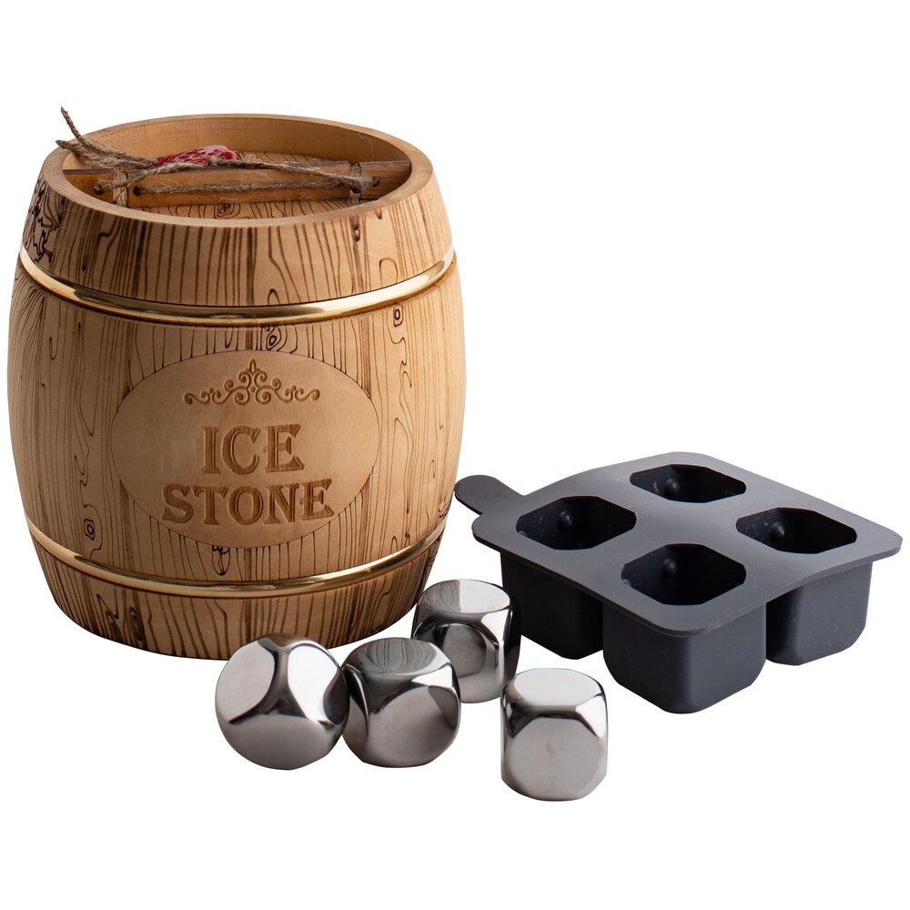 Камни для виски Icesteel бочонок (4 серебрянных куба, 1 форма)