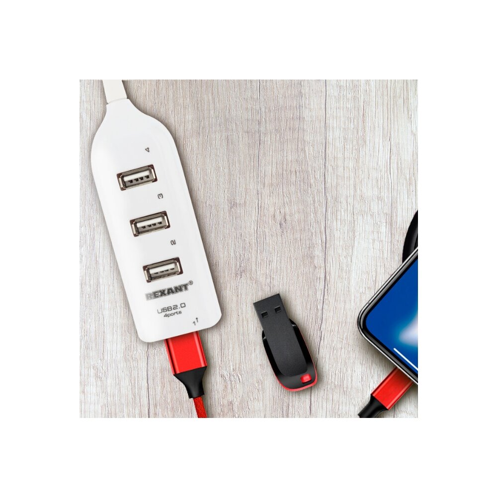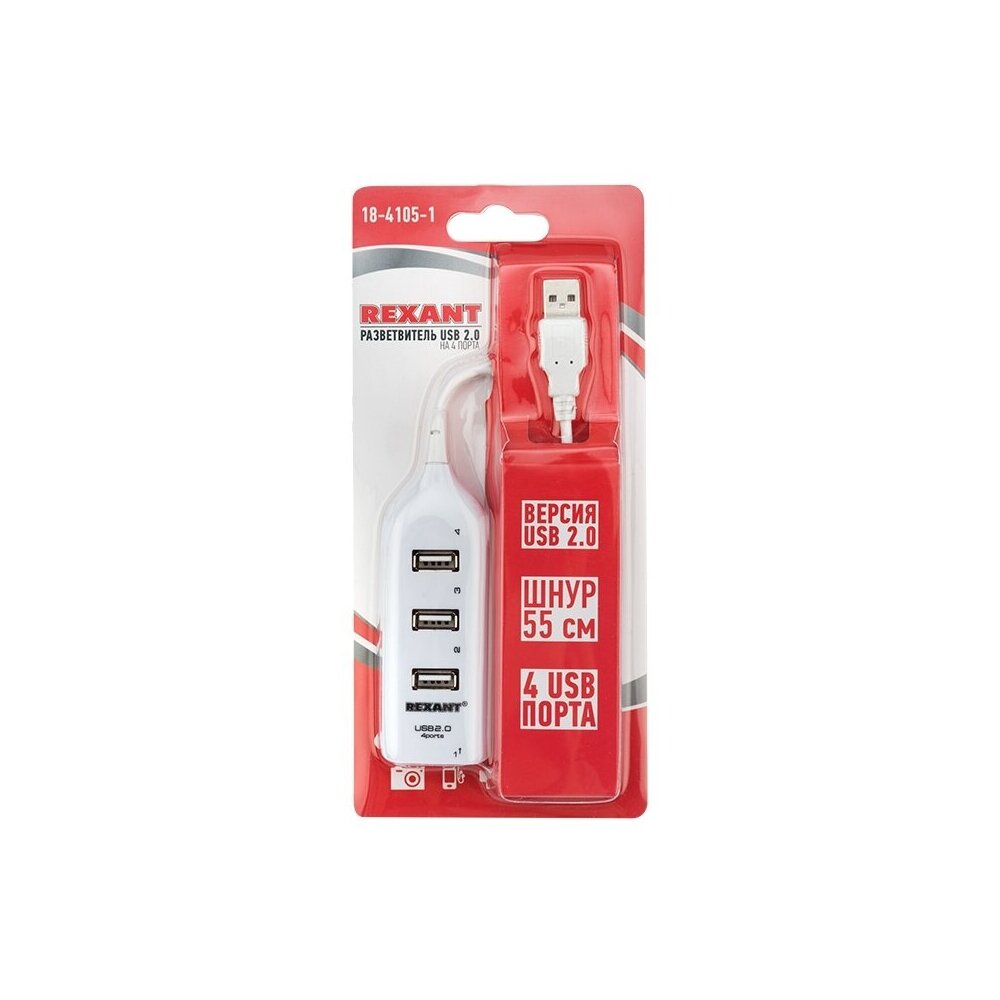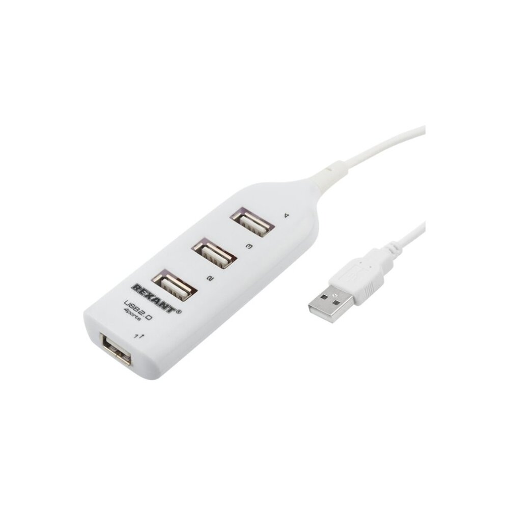 Разветвитель USB 2.0 на 4 порта REXANT, провод 55 см белый