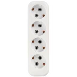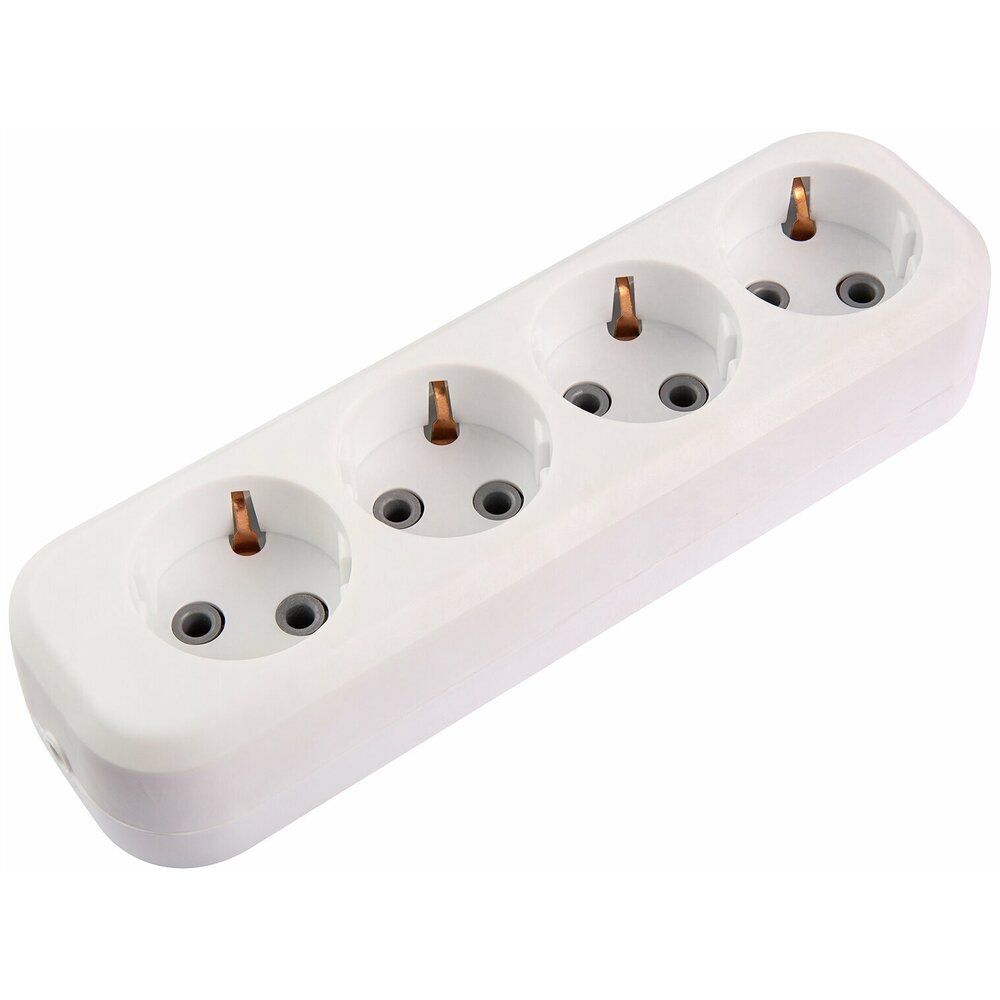 Колодка розеточная с заземлением, имеет корпус белого цвета. Служит для крепления электрических контактов и защитного корпуса Позволяет подключить в электрическую сеть одновременно четыре прибора. Максимальный ток нагрузки составляет 16 А, максимальная подключаемая мощность - 3600 Вт.