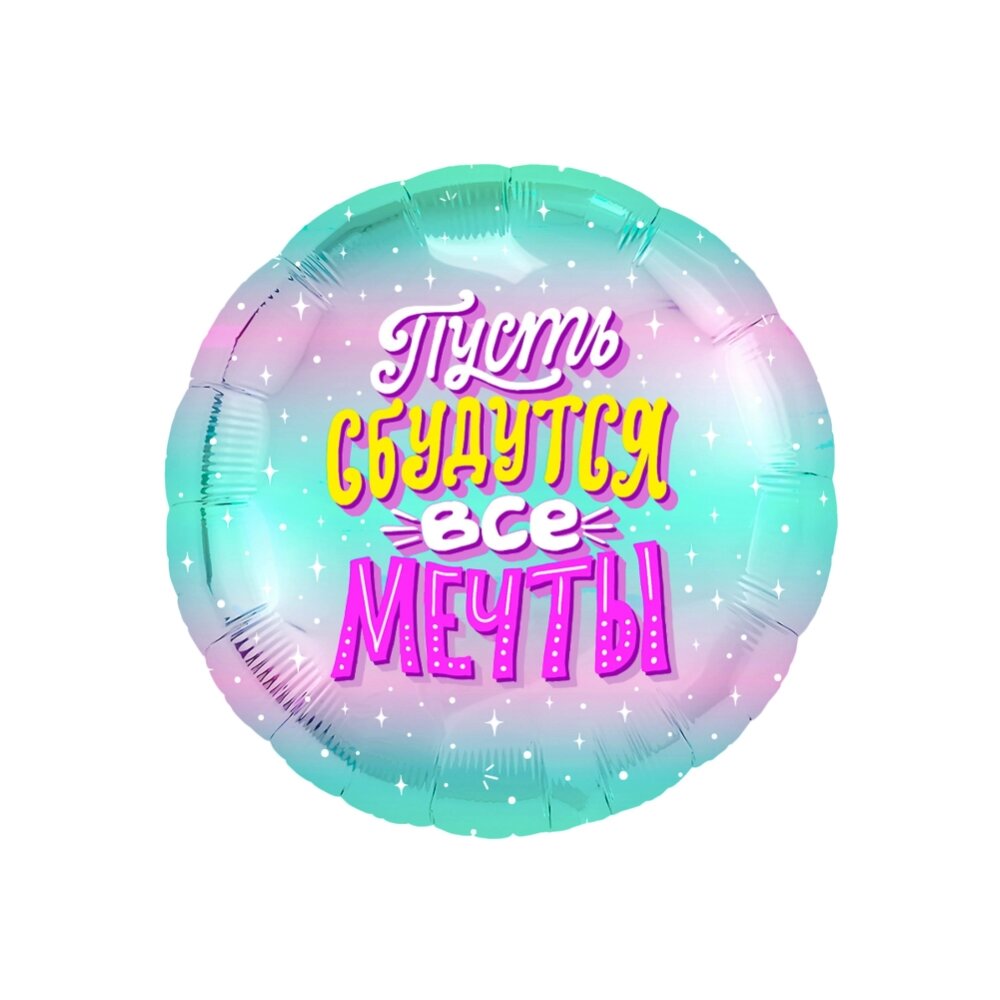 AGURA Воздушный шар "Пусть сбудутся все мечты" фольгированный, круг, 18"/ 46 см, мятный