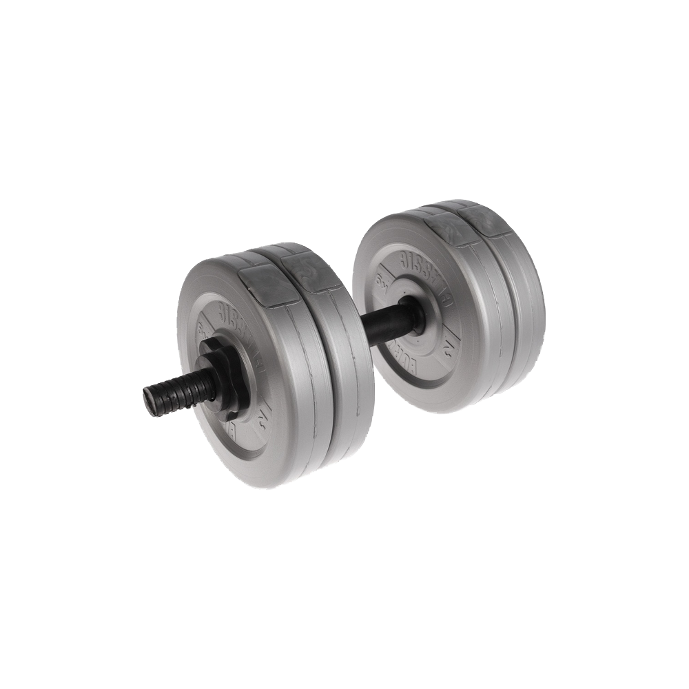 Общий вес: 8кг Тип: сборно-разборная В комплекте: Гриф гантельный: 1шт Длина: 41см Диаметр: 25,4мм Замок: гайка Вейдера с резьбой (пластик) Материал: поливинилхлорид Материал рукояти: пластик с противоскользящей насечкой (не вращающаяся) Вес грифа: 0,22кг Диски: 2кг - 4шт. Тип: пластиковый Посадочный диаметр: 26мм Материал корпуса: поливинилхлорид Внутренний наполнитель: композитная смесь (песок + цемент) Цвет: серый