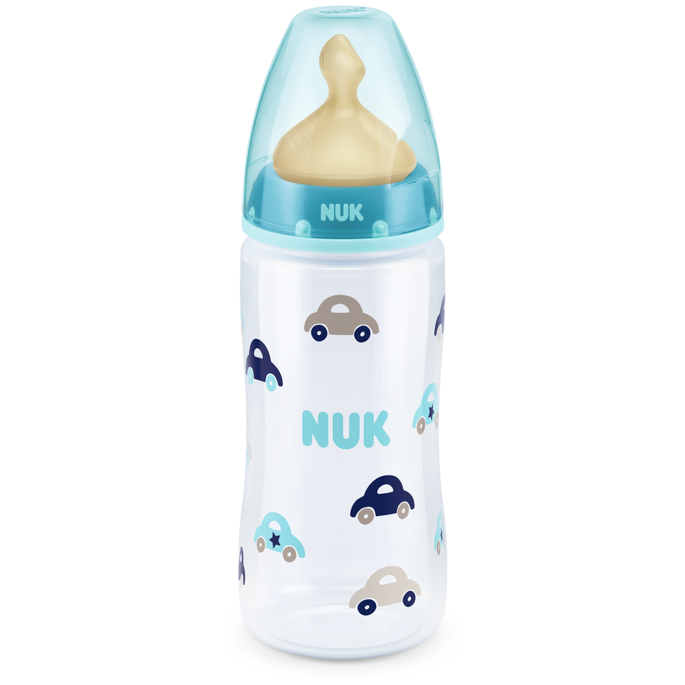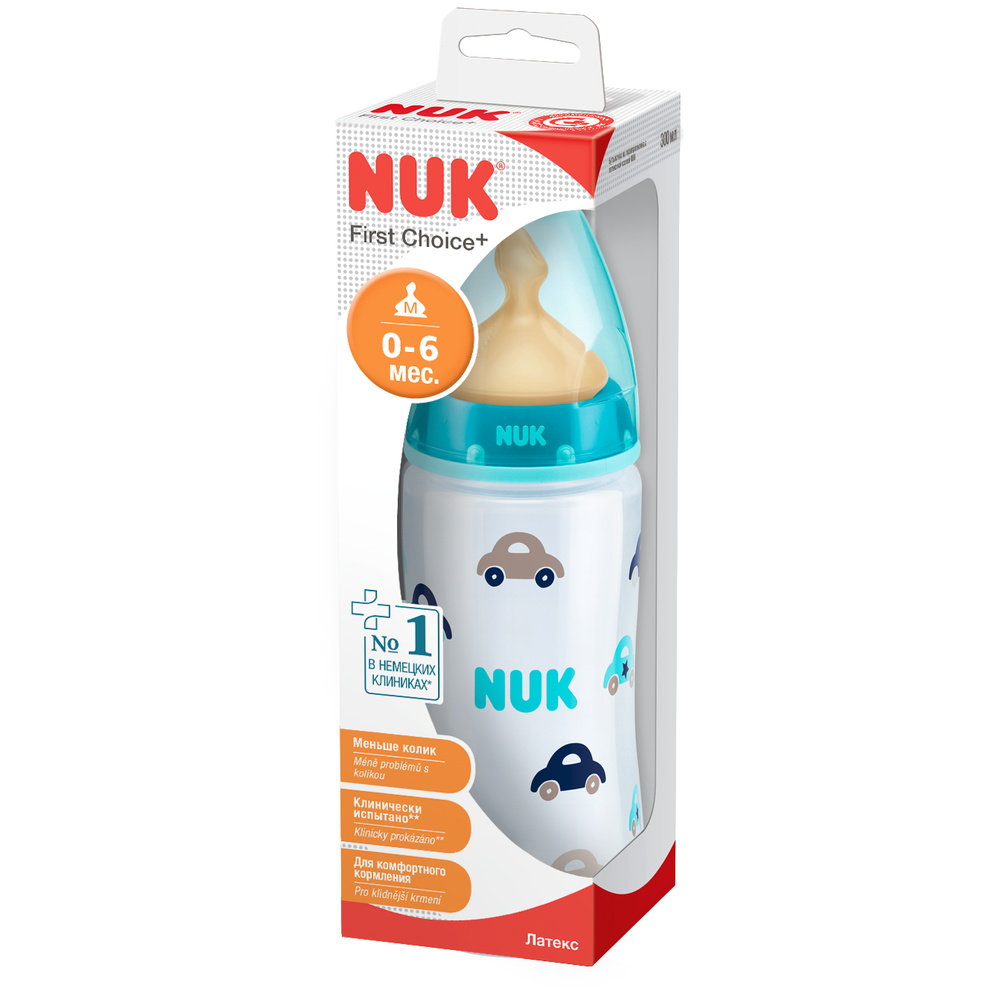 NUK First Choice Plus Бутылочка с соской из латекса - На машине, отверстие "М", размер 1, (300 мл)
