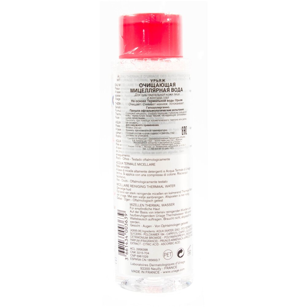 Uriage мицеллярная вода очищающая для чувствительной, склонной к покраснению кожи, 100 мл