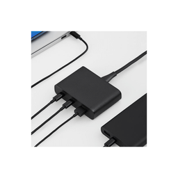 Зарядное устройство Xiaomi ZMI USB Desktop Fast Charger 65W Black. Работает с самыми разными устройствами, включая новейшие ноутбуки USB-C, планшеты, телефоны и другие USB-устройства. Зарядка высокой мощности для ноутбука: выход USB PD 65 Вт через один порт USB-C. Малый форм-фактор и вес делают зарядное устройство подходящим как для настольного компьютера, так и для путешествий Исключает необходимость использования нескольких адаптеров переменного тока и вилок. Широкая совместимость с ноутбуками, планшетами, телефонами и другими USB-устройствами Зарядка 2 устройств одновременно: 45 Вт и 18 Вт PD через 2 порта USB-C; или 45 Вт PD и 18 Вт QC через USB-C и USB-A Зарядка 3 устройств одновременно: 45 Вт PD через один порт USB-C плюс разделенная зарядка 5 В / 18 Вт через другой порт USB-C и порт USB-A. Количество разъемов 3 Размеры 95 x 66.5 x 23 мм Порты и разъёмы Type-C (x2), USB-A (x1) Параметры выхода Type-C 1: 5V/3A, 9V/3A, 12V/3A, 15V/3A, 20V/3/25A, 65W MAX; Type-C 2: 5V/3A, 9V/2A, 15V/1.5A, 18W MAX; USB: 5V/3A, 9V/2A, 12V/1.5A, 18W MA. Источник питания От сети Параметры входа 100-240V ~50/60Hz 1.6A Кабель в комплекте Да