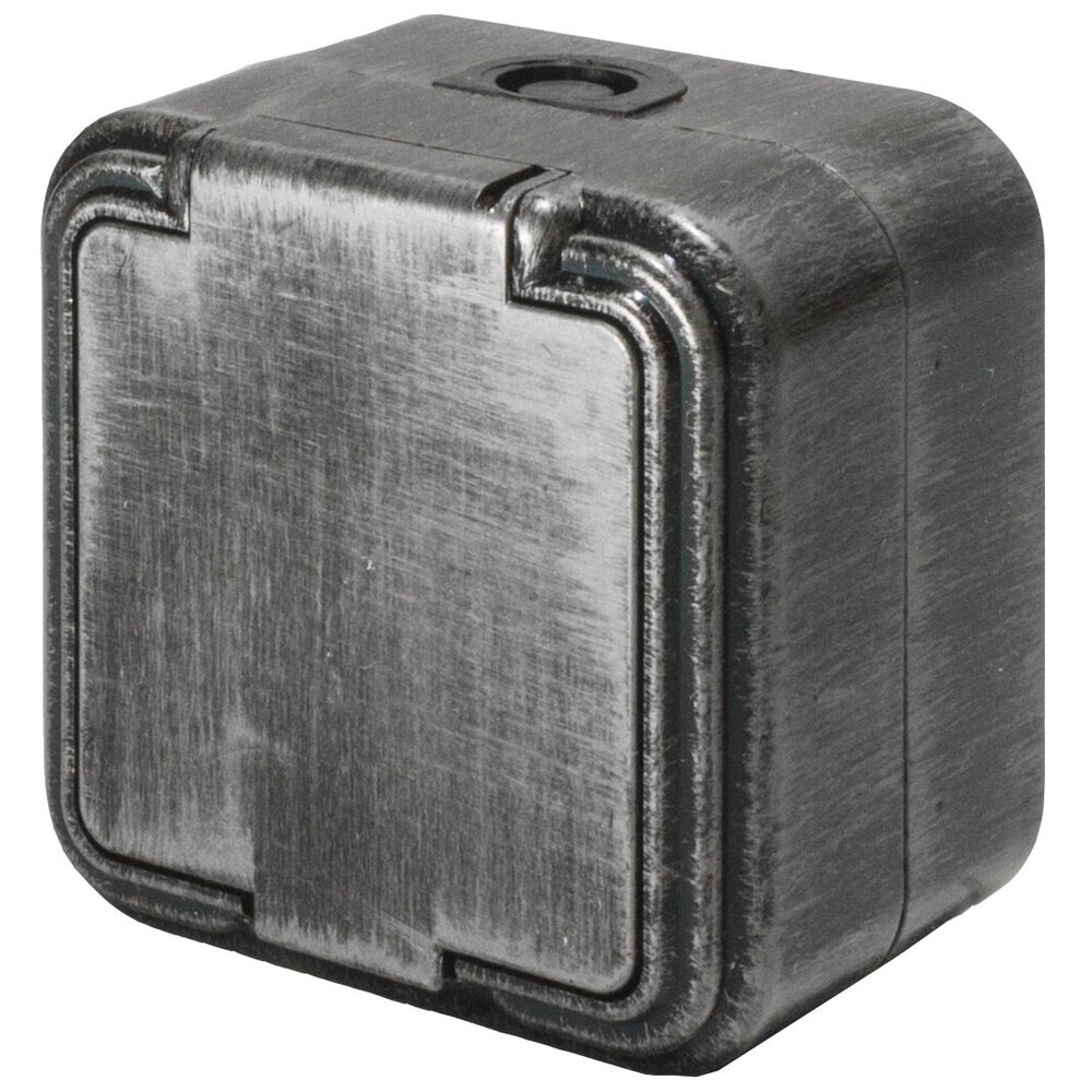 Розетка открытой установки с заземлением 1-местная серия Palazzo с крышкой IP54, серебро патина, duwi 26457 6