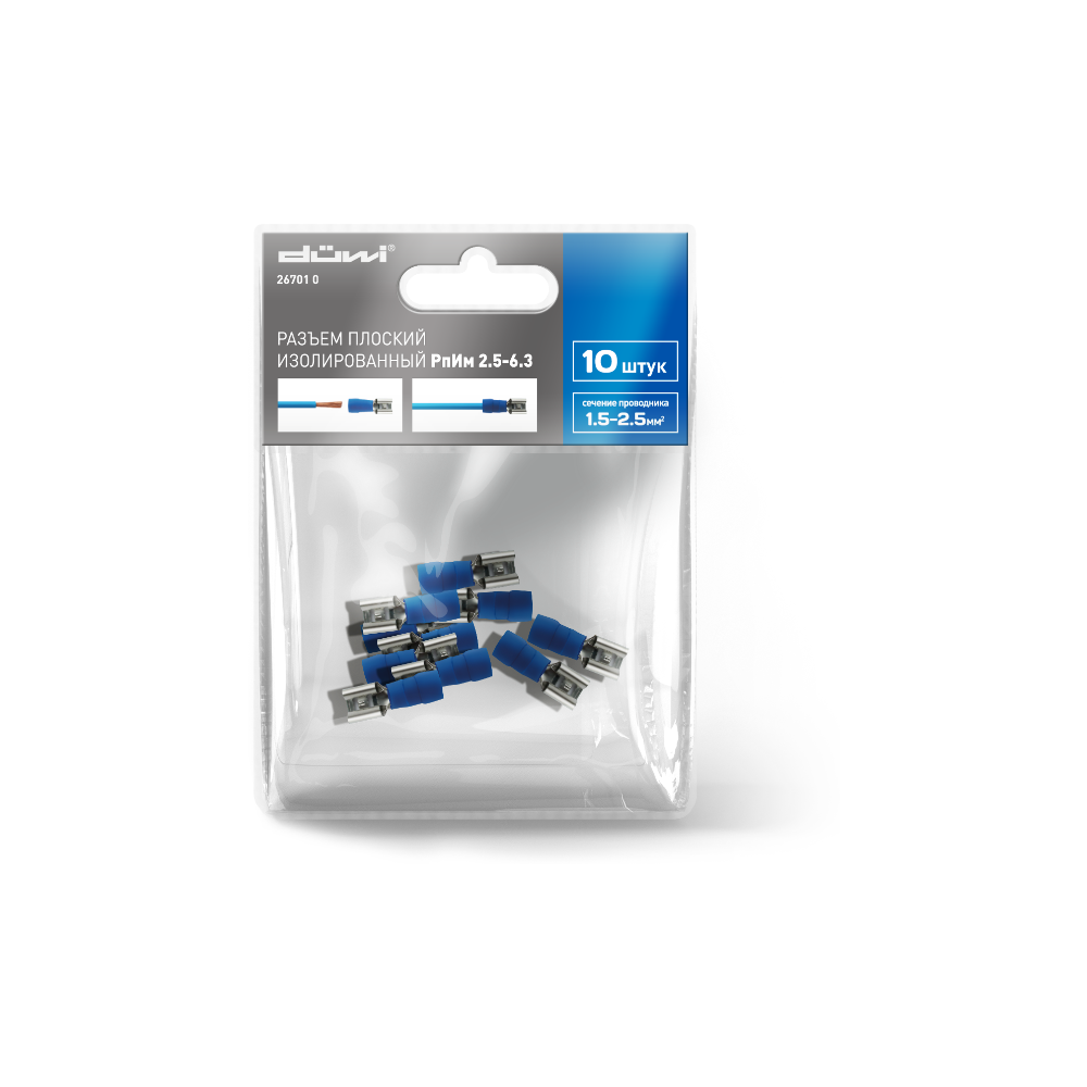 Разъем плоский изолированный 2.5-6.3 плоский (мама), 10 шт./уп. duwi 26701 0