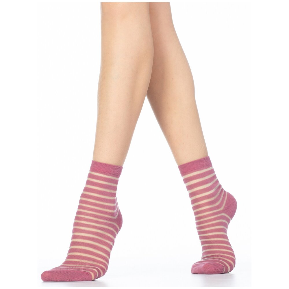 Женские фантазийные носки из хлопка и прозрачной синтетической мононити. По всей длине модели размещен рисунок "полоски".