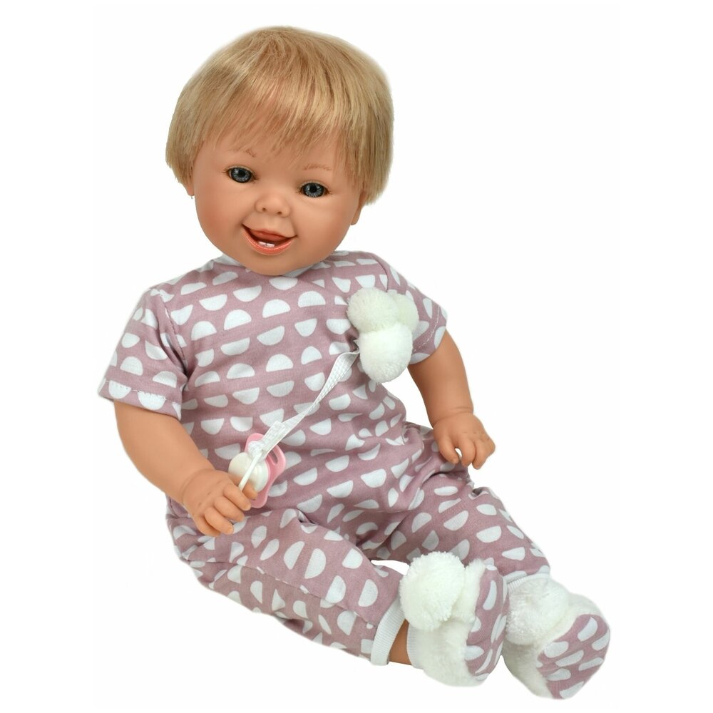 Искренняя улыбка куклы "Pillines Baby" позволит получить настоящее наслаждение от её приобретения. Не откажите в удовольствии себе и своим детям прикоснуться к очаровательному малышу от испанской кукольной фабрики Marina&Pau, и поиграть с ним. "Pillines Baby" изготовлен из комбинированных материалов: туловище мягконабивное, руки, ноги и голова выполнены из винила, бархатистого на ощупь. Волосы малыша светлые, прошиты по всей голове. Кукла выполнена с большой детализацией и качественной прорисовкой. Личико расписано вручную художниками. Рот куклы открыт в радостной улыбке, видны два нижних зуба и язычок. Пальцы разделены, есть возможность захвата соски. Одежда для куклы разработана на фабрике дизайнерами и сшита из натуральных материалов. Малыш "Pillines Baby" обладает выразительным взглядом. Глазки выполнены из акрила, обрамлены ресничками, не закрываются. Кукла одета в трикотажный комбинезон с короткими рукавами, пинетки и шапочку с помпонами. Для интересной игры у малыша есть соска и мягкий плед. Малыш "Pillines Baby" не оставит равнодушным своего обладателя и станет самым долгожданным подарком на любое торжество! Кукла упакована в подарочную коробку. Высота куклы: 45 см. Без звуковых эффектов. Ароматизирована.