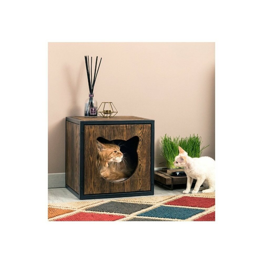 Очаровательный домик для вашей кошки, где можно прятаться, играть и упражняться. Благодаря стильному дизайну и полной функциональности, этот домик станет отличным предметом интерьера в любой комнате вашего дома. Произведенный из самых качественных материалов, этот домик прослужит вам и вашему любимцу много лет. Как мы все знаем, для здоровья кошке нужно точить коготки минимум 15 минут в день, поэтому на поверхности домика мы закрепили панель из сизаля, которая прекрасно подводит всем породам кошек, и позволит защитить остальную мебель вашего дома. В новом стильном домике вашему любимцу будет совершенно уютно, счастливо и комфортно. Приобретая этот домик, вы не только делает жизнь вашей кошки комфортнее, вы делаете свой дом еще более стильным и продуманным до мелочей! Материал: Сталь, дерево Материал когтеточки: Сизаль ДxШxВ: 400x400x400 мм