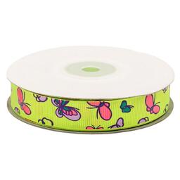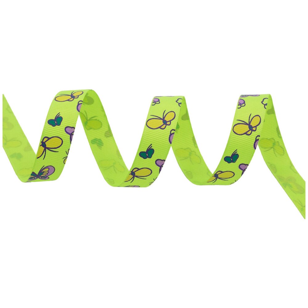 Лента репсовая 'Бабочки 1' 1,5см*22,86м (желтый неон) 22.86 м