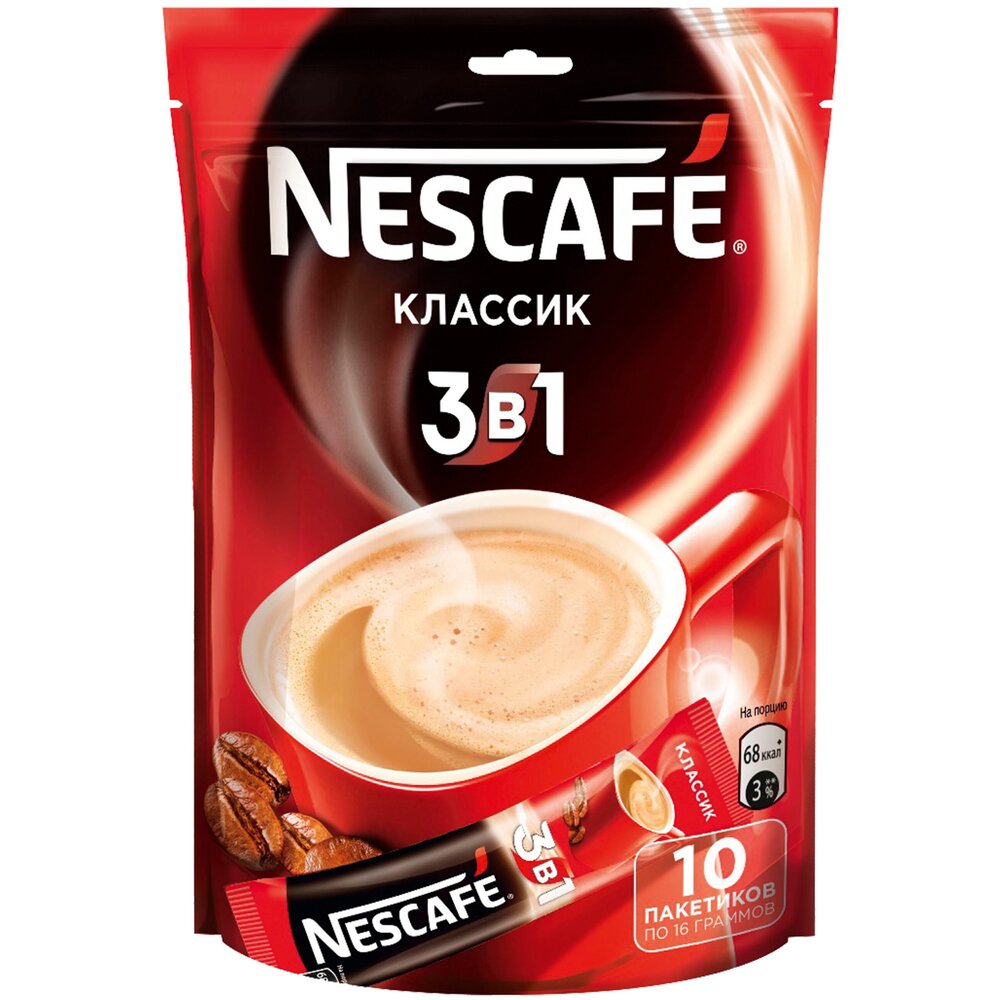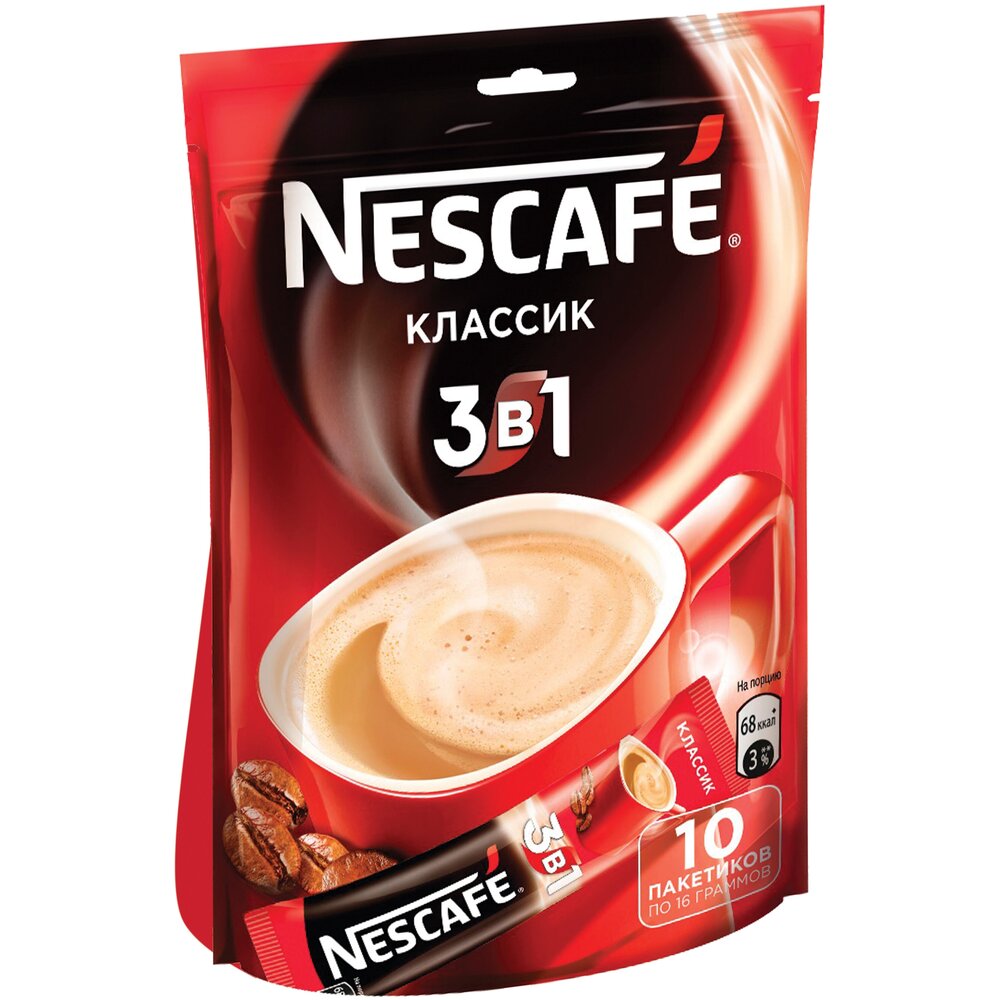 Растворимый кофе Nescafe 3 в 1 классический, в стиках, 10 шт., 145 г