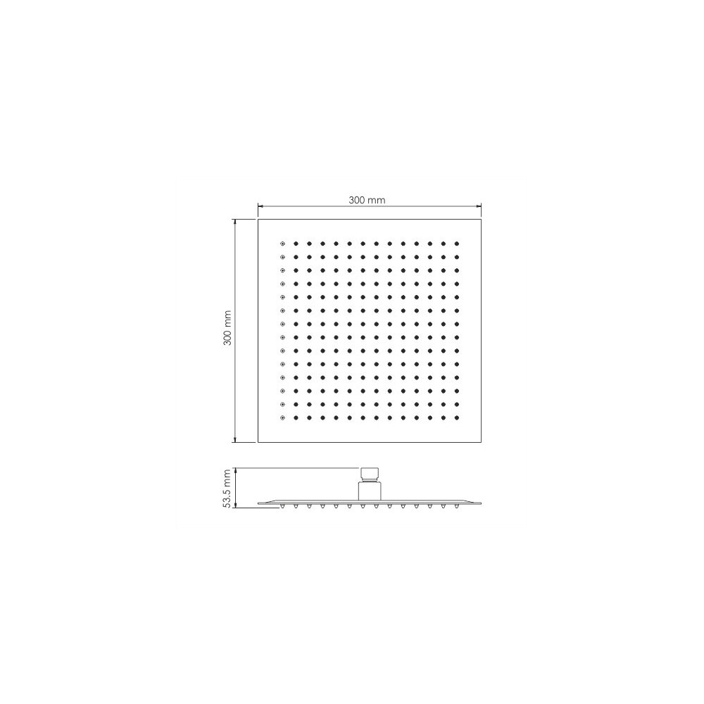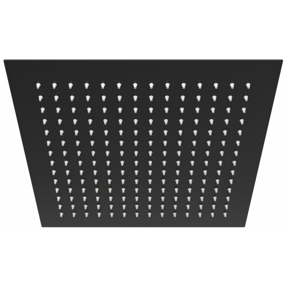 Характеристики Душевая насадка 300 x 300 мм, 196 форсунок, нержавеющая сталь Материалы Нержавеющая сталь Покрытие Черный Soft-touch