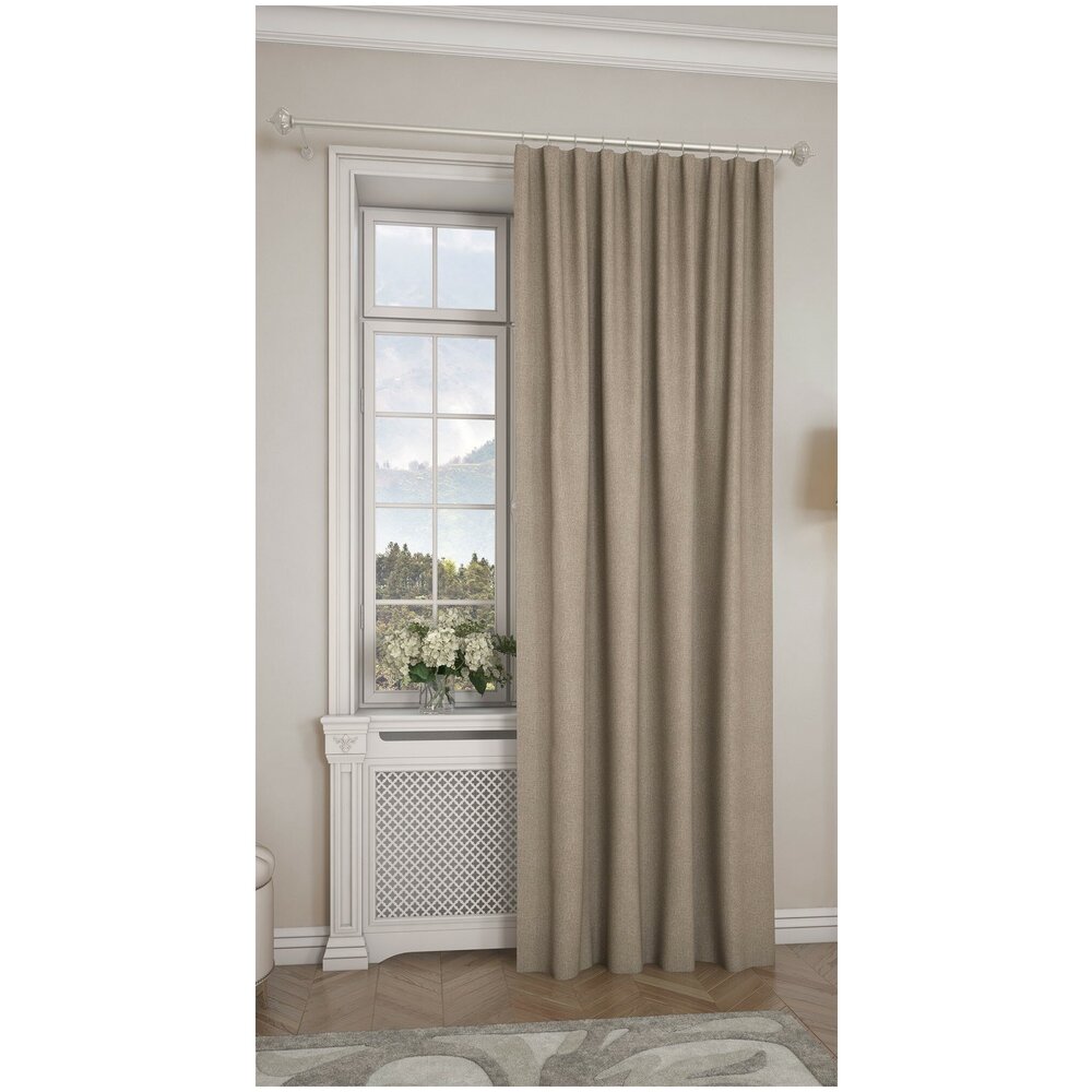 Портьера изготовлена из плотной светонепроницаемой ткани "блэкаут", состоящей из нескольких слоев,которые образуют плотный материал с отличными свойствами, который обеспечивает не только защиту от яркого солнца в летний период, но и меньший нагрев комнаты, а также поглощение уличного шума. Лицевая сторона портьеры выполнена из жаккарда с фактурой "под лен", изнаночная сторона-гладкая и однотонная. Портьера придаст гостиной и спальне богатый респектабельный вид, великолепно дополнит образ, добавляя помещению нежности,уюта и покоя,позволит почувствовать легкость и близость природы, наполнит жизнь миром и гармонией.Штора крепится на карниз при помощи шторной ленты.Ширина готового полотна 200 см, высота 260 см. Портьера крепится к карнизу при помощи шторной ленты. Плотность ткани 280 гр.кв.м. Светозащита<br />высокая. Оттенок изделия может отличаться от представленного на сайте в силу особенностей цветопередачи фототехники и Вашего монитора. Изображение товара на фотографии не отражает точную информацию о комплектности.