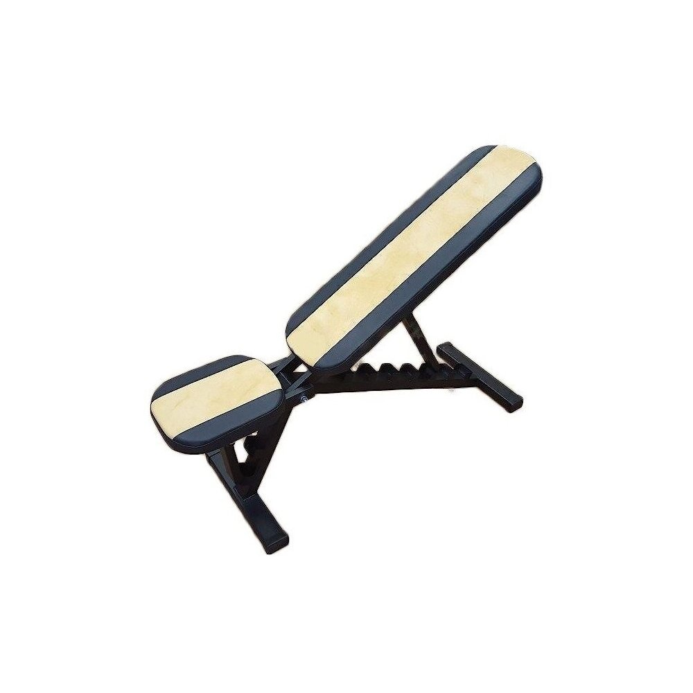Мощная профессиональная брендовая скамья с максимально допустимой нагрузкой свыше 350 кг! Принимает 9 различных положений. Сиденье — 2 положения, Спинка — 7 положений. Это обеспечивает выполнение любых упражнений с гантелями или штангой! Сиденье и спинка скамейки выполнены из сверхплотного жёсткого наполнителя. Скамья очень компактная. В сложенном виде почти не занимает места. Удобно хранить, удобно перевозить. Изменяет угол наклона в одно движение. Подобный механизм изменения угла наклона значительно удобнее, чем в аналогах, на которых для фиксации используется штырь.