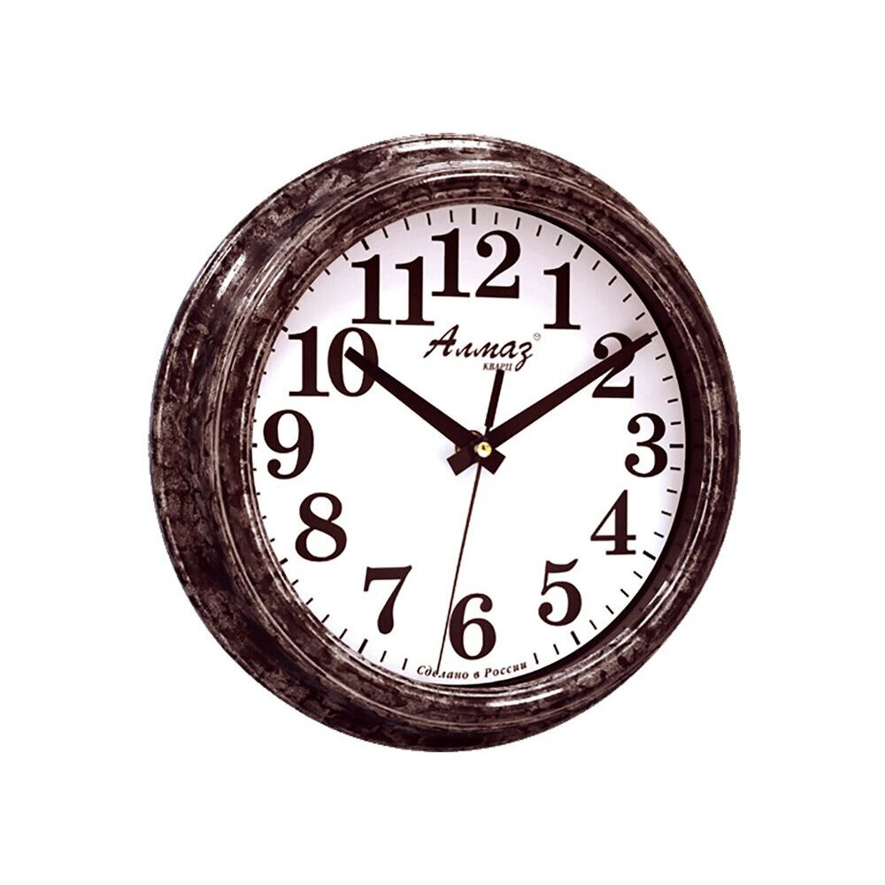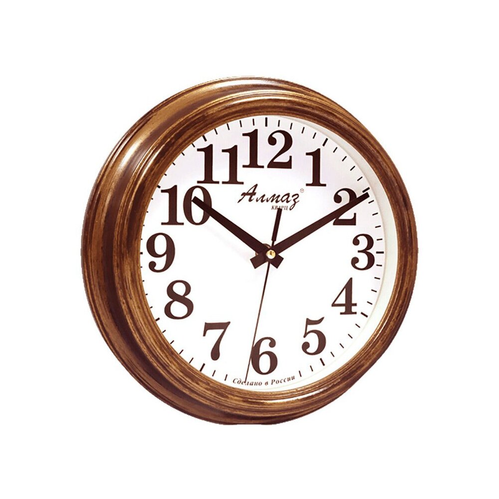 Настенные кварцевые часы «Алмаз» — прекрасное дополнение вашего интерьера. Часы изготовлены из качественного пластика, циферблат защищён прочным стеклом. Часы имеют бесшумный плавный ход и работают от одной батарейки типа АА.