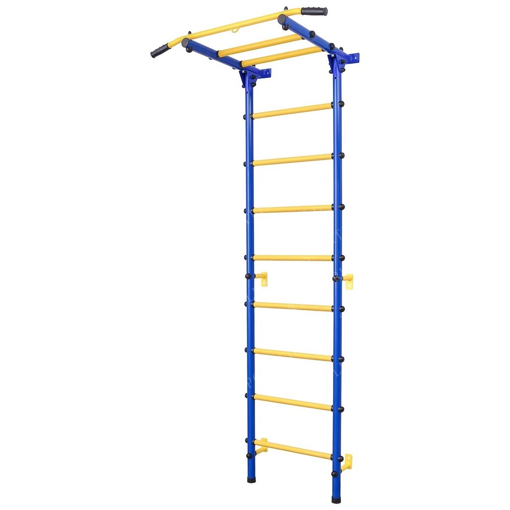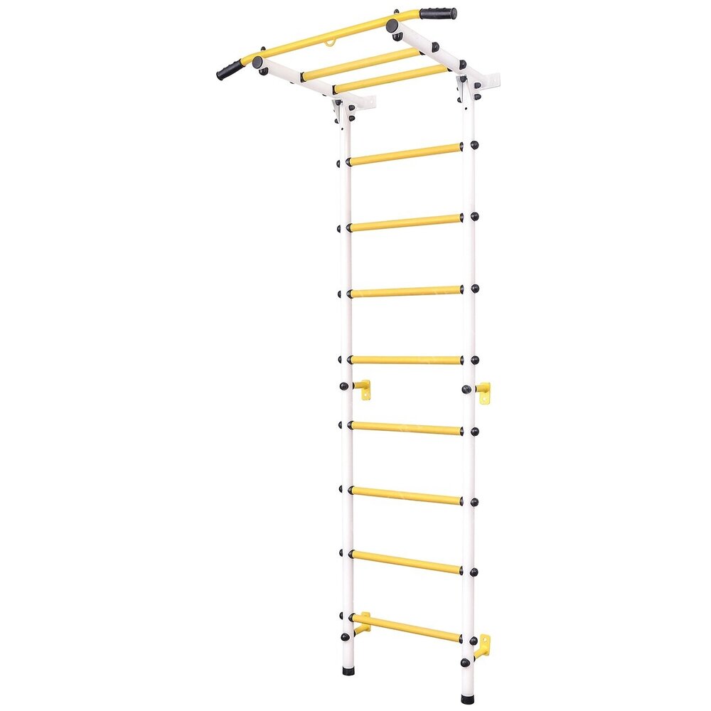 Комплектация: Шведская стенка Турник Хомут - 8 шт. Дюбель пластиковый - 6 шт Заглушки-44 шт. Инструкция по установке Характеристики: Высота 220 см Материал Стальной круглый профиль 42 мм; ступени с покрытием ПВХ Максимальный вес пользователя более 120 кг Тип перекладин труба O 25 мм с ПВХ покрытием толщ. 2мм Размер стенки в собранном состоянии (В*Ш*Г) 220*56*75 Ширина 56 см Глубина 75 см Профиль вертикальных стоек, мм*мм круглый 42 мм Расстояние между вертикальными стойками 45 см Диаметр перекладин 25 мм Количество перекладин 9 шт Крепление перекладин болты М12 Расстояние между перекладинами 23 см Размер упаковки 240*40*40.