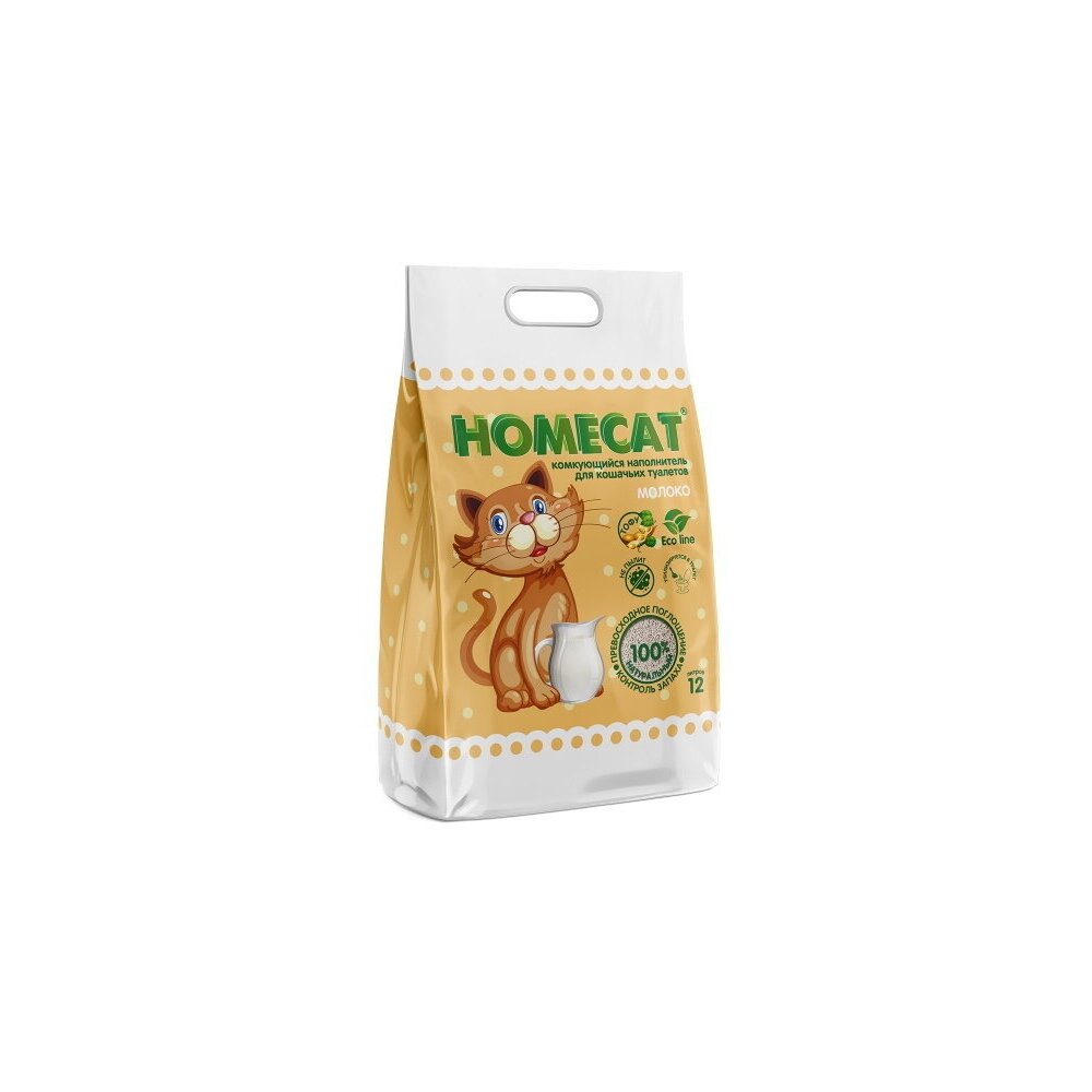 Комкующийся наполнитель Homecat Эколайн Молоко (12 л)