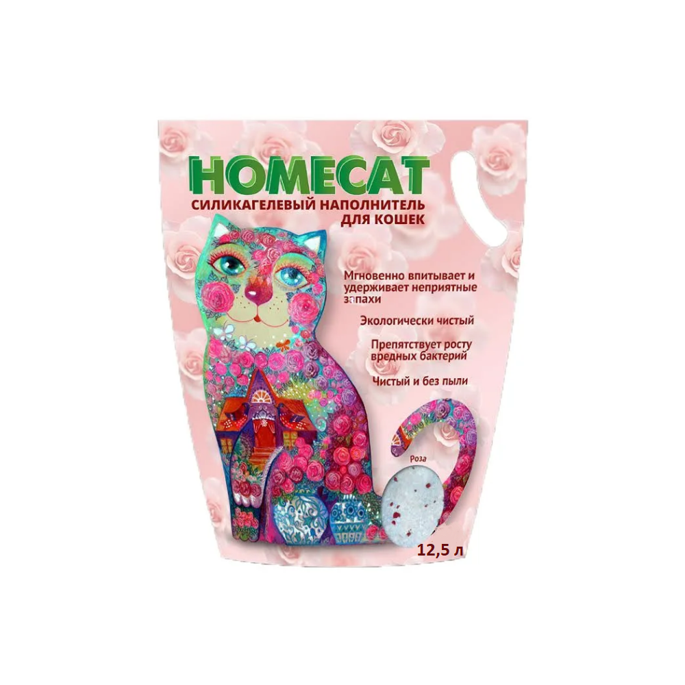 Наполнитель силикагелевый Homecat для кошачьих туалетов с ароматом Розы (12.5 л)
