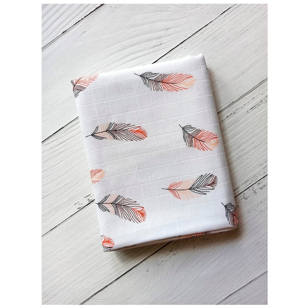 Плед Alisse Dreams Детский муслиновый, 4 слоя, 75х100 см пёрышки оранжевые