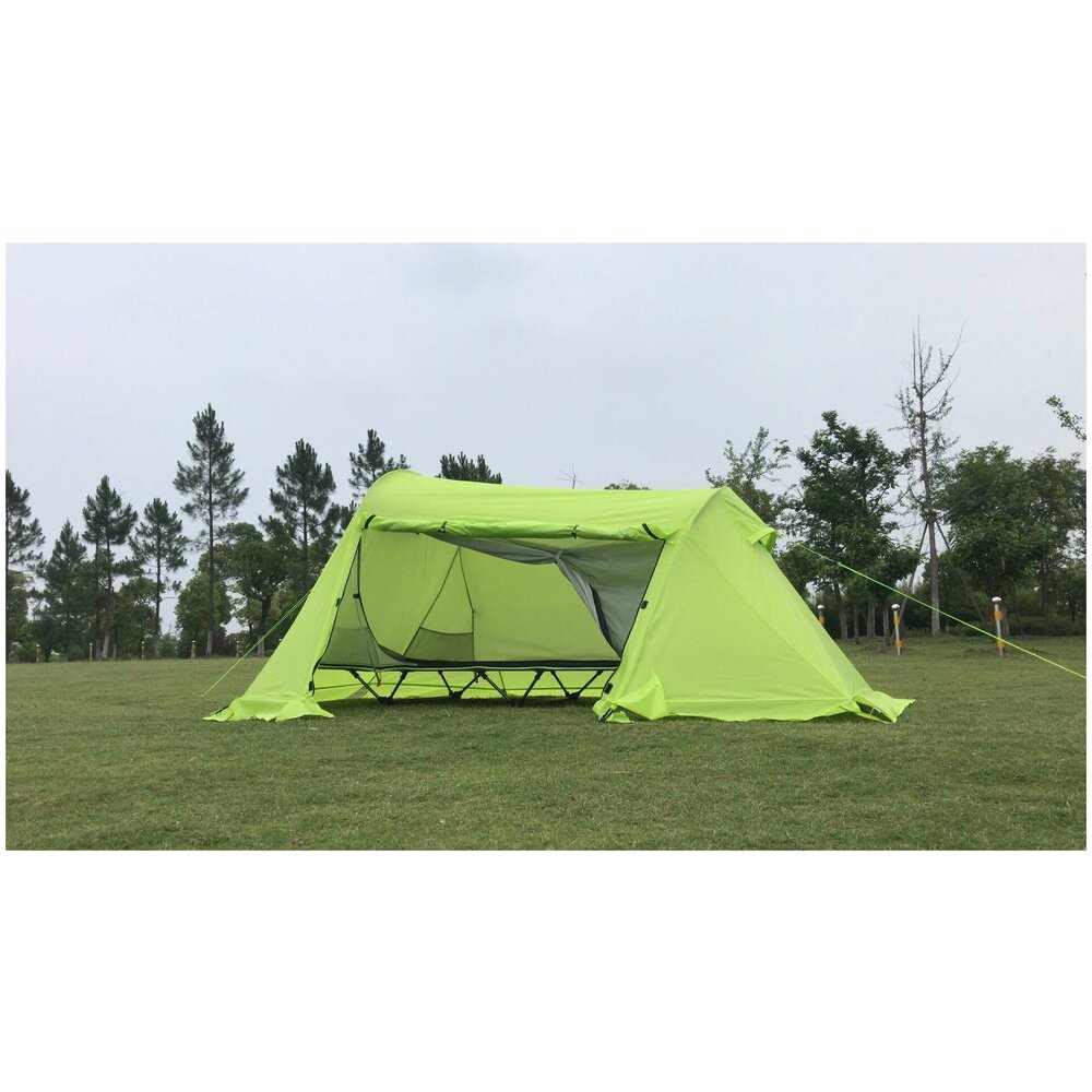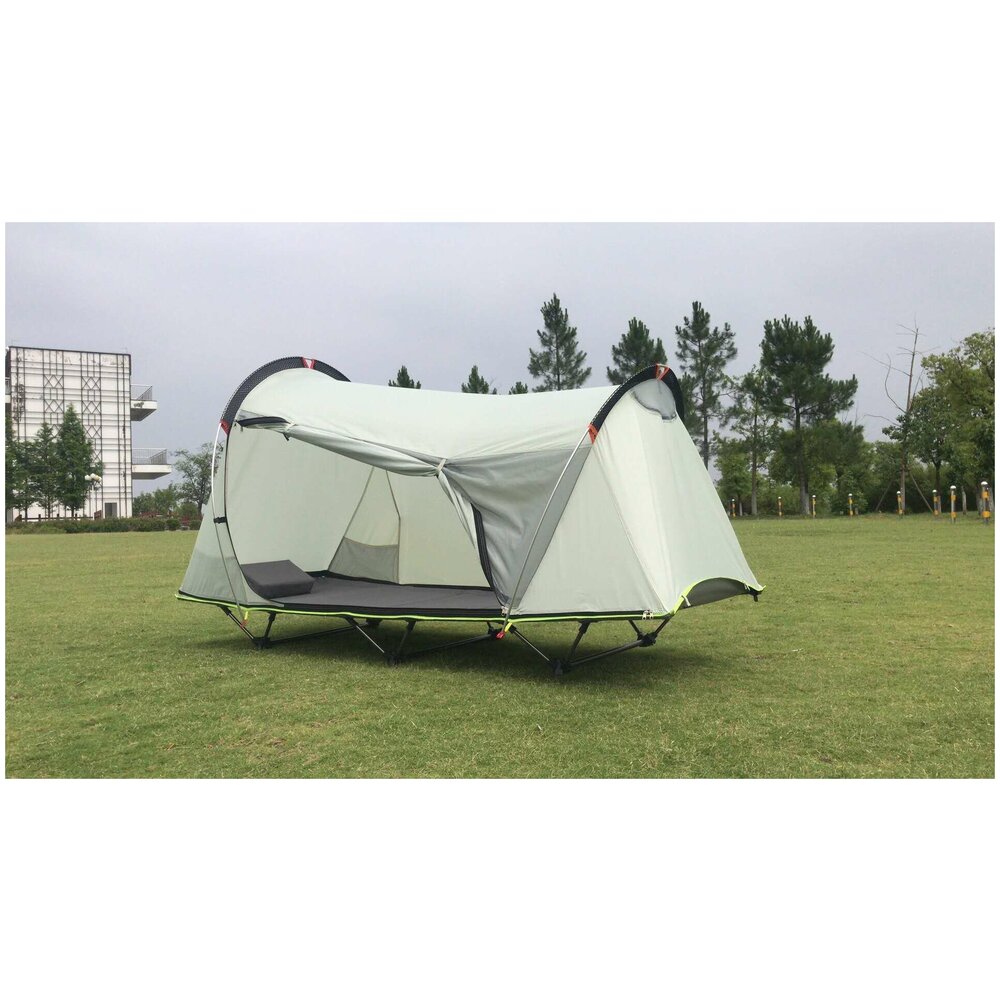 Полноценный туристический набор от MirCamping – туристическая кровать + палатка Одноместная палатка-раскладушка сочетает в себе все лучшие качества: Палатка двухслойная. Внешний слой (тент) - непромокаемый и крепкий, призван защитить от ветра и дождя, а внутренний слой дышащий и очень легкий, на его стенках не образуется конденсат и спать в такой палатке очень комфортно. Внешний материал 210T полиэстер PU 3000мм W/R UV данные характеристики говорят о прочности, надежности, высокой влагостойкости ткани. Каркас алюминиевый и прочный. Главный плюс этой палатки – это то, что туристическая кровать находится высоко от земли и защищает от холода. К тому же ее можно использовать отдельно от самой палатки. Например днем на отдыхе можно просто использовать ее как туристическую мебель, а вечером растянуть тент и это уже полноценная одноместная палатка. Ко всем преимуществам данная палатки имеет компактный размер в сложенном виде - 210*80*135см., с весом всего 6 кг. Тент палатки образует небольшой тамбур, а вещи можно хранить прямо под раскладушкой. Такая палатка является очень популярной среди туристов, рыбаков и охотников.