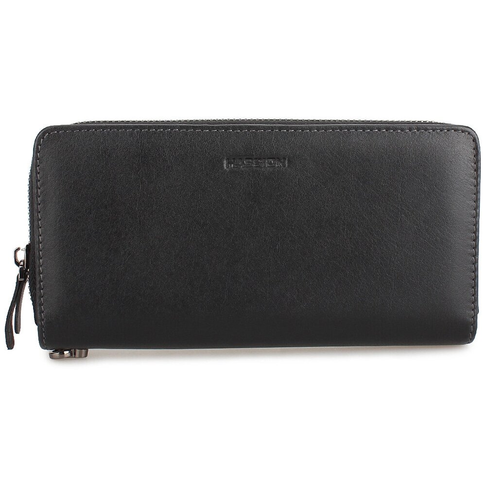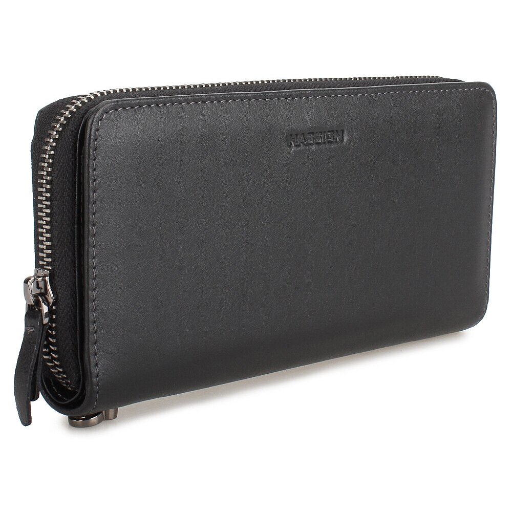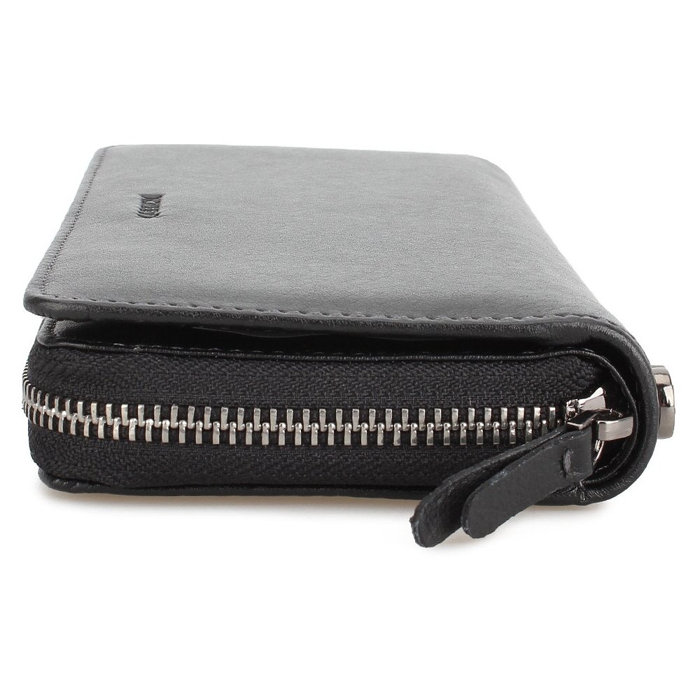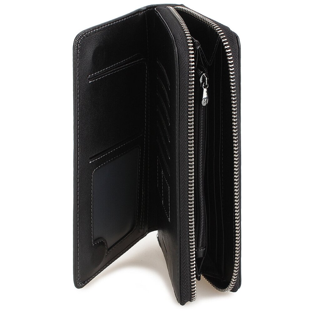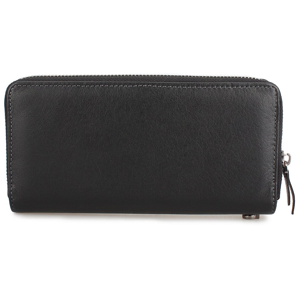 Портмоне из мягкой натуральной кожи. Основное отделение застегивается молнией, внутри есть отсеки для хранения купюр в развернутом виде и карман-перегородка, в который можно складывать мелочь. Также у этой модели есть дополнительный отдел на скрытых магнитных кнопках, в нем расположены слоты для банковских карточек и прозрачное окошко для документов. Размеры: высота – 19,1 см, ширина – 9,5 см, глубина – 2,5 см. Длина ручки: 19,5 см.