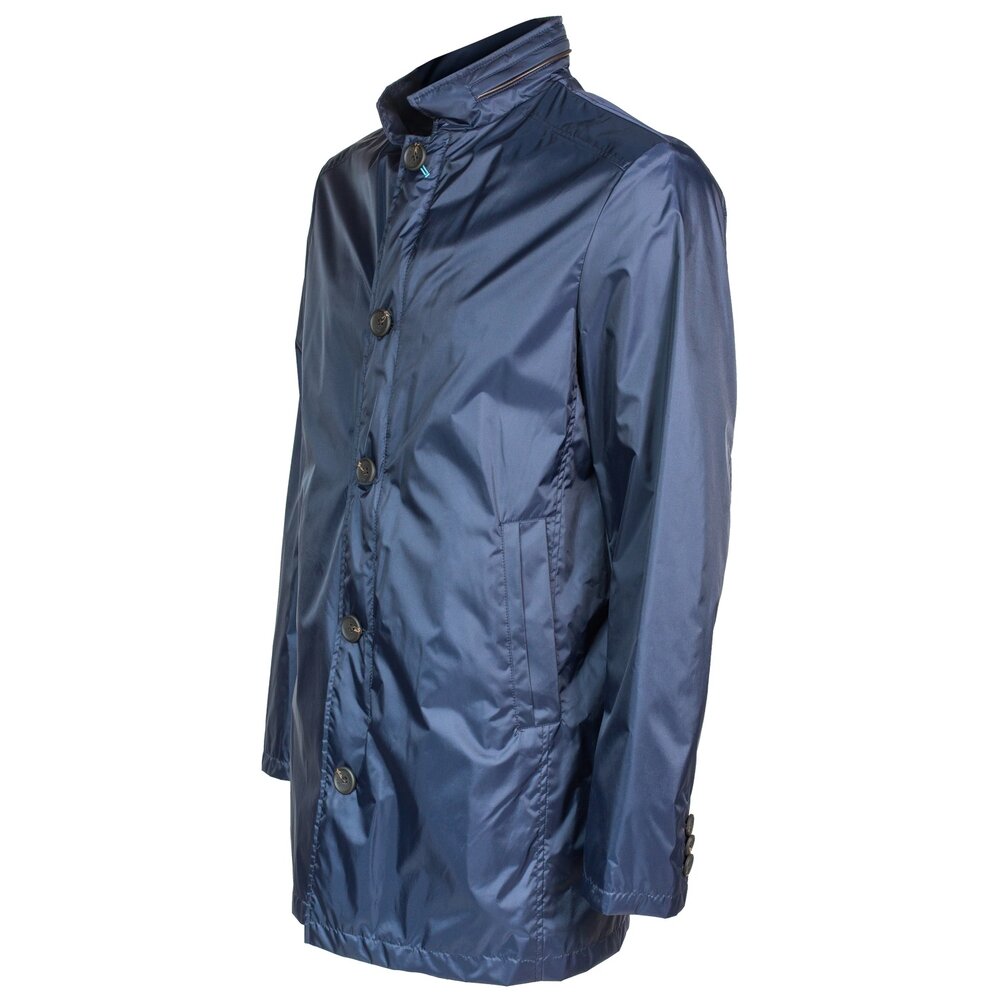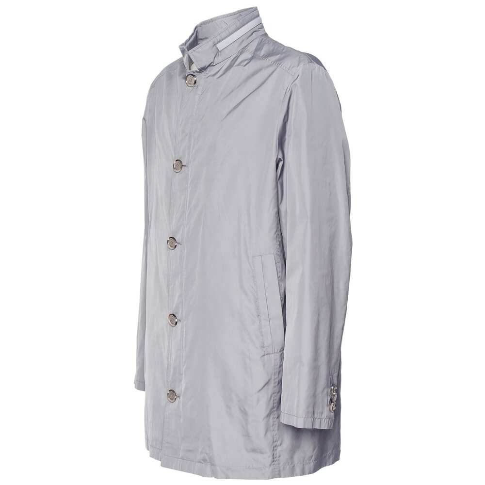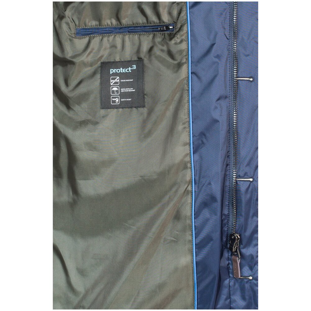 Плащ полуприлегающего силуэта из ветрозащитного и водоотталкивающего материала. Воротник - стойка с декоративной молнией. Застежка на молнии и ветрозащитный клапан на пуговицах. Одна шлица. Два наружных боковых кармана. Рукава со шлицами на три пуговицы. Два внутренних кармана с застежкой на молнии.<br />Длина по спинке 48 размер 81 см<br />Рекомендуемый температурный режим носки: от +5 до +15С<br />Прекрасно сочетается с классическим костюмом
