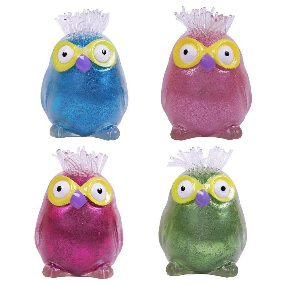 Очень необычные и яркие игрушки! Совы сделаны из прозрачного эластичного материала и наполнены воздухом с блестящей пудрой, что заставляет их сверкать и переливаться! Размер игрушки: 10х7х6см Наполнитель: воздух, блестящая пудра Ассортимент: 4 цвета (бледно розовый, темно розовый, зеленый, голубой) Материал: полимерные материалы Индивидуальная упаковка: пакет. 12 штук в картонном дисплее. Размер дисплея: 31х18х9см