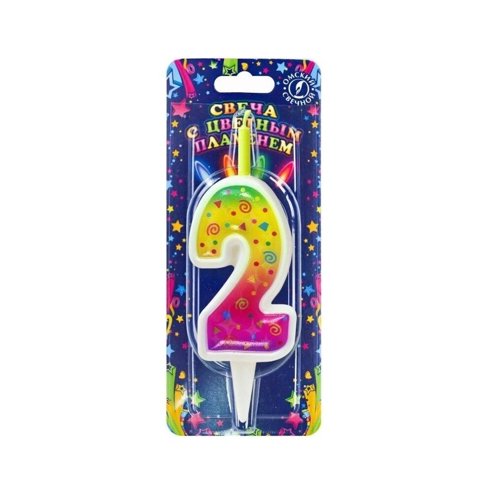 Свеча для торта цифра 2 с цветным пламенем станет прекрасным дополнением праздника и не оставит никого равнодушным. А цветное пламя станет прекрасным украшением и удивит всех присутствующих на празднике.