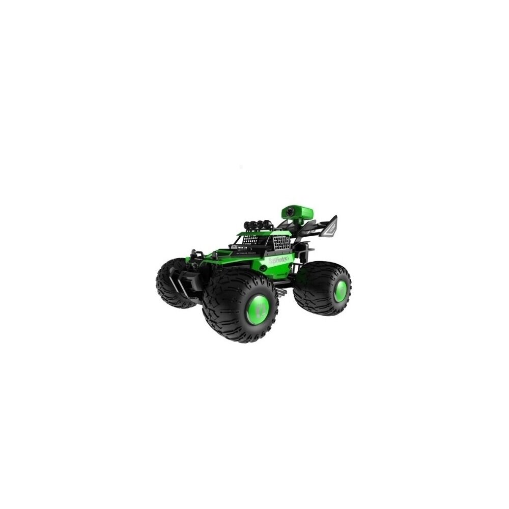 Внедорожник на радиоуправлении - это настоящий шпион, который оснащен камерой, с помощью которой он может передавать изображение на мобильный телефон. Изображение передается в реальном времени, для этого только необходимо подключиться к точки доступа Wi-Fi.Машинка работает от аккумулятора который входит в комплект, а пульт дистанционного управления от четырех батареек типа АА (в комплект не входят).Чтобы воспользоваться функцией съемки, Вам необходимо с машинки снять стандартный спойлер, и установить спойлер с камерой. Камера подключается к машинке с помощью micro usb. Максимальная скорость езды джипа до 20 км/ч, а время работы батареи до 15 минут.Частота управления игрушки: 2.4GHz.Радиус действия: 40 м.Разрешение видеокамеры: 640x480.Масштаб модели: 1:28.Максимальная скорость: 20 км/ч.Размер упаковки: 41х12х29 см.