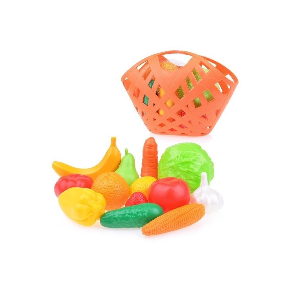 Набор упакован в достаточно мягкую, вместительную корзинку. Удобные ручки без острых кромок не поранят ребенка. С этим набором ребенок сможет играть в разные игры, сочетая его с посудкой, детскими магазинными тележками, корзинами и другими игрушками.