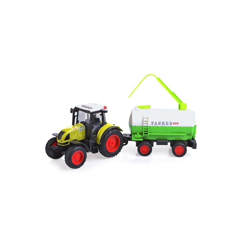 В наборе: • Трактор: - 17×11×9 см. - инерционный механизм - световые и звуковые эффекты • Прицеп-бочка: - 19×10×9 см. • Материалы: полимерные материалы, пластик. • Соответствует требованиям безопасности продукции. • Для детей от 3-х лет.