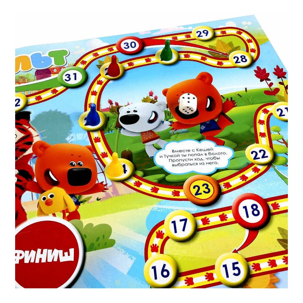 Настольная игра с участием как 1, так и дружная компания из 4 игроков. Участники кидают кубик и ходят вперёд на выпавшее количество клеток, стремясь первым попасть на финиш и выиграть. В процессе игры необходимо преодолевать препятствия, пропускать ход, возвращаясь на ранее занимаемую позицию или перескакивать вперёд на один или несколько ходов. Ребята научатся играть по правилам, соблюдать очередность ходов, выигрывать и проигрывать. Удобный формат детской настольной игры позволяет взять её в дорогу. Игра-ходилка в игровой форме обучает счёту и развивает:- ориентацию на плоскости- внимание- визуальное восприятие.