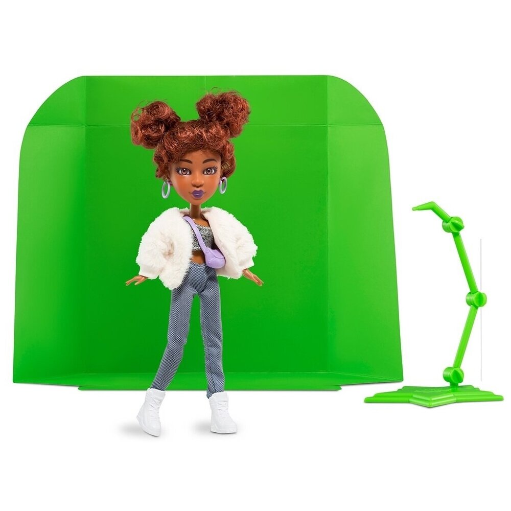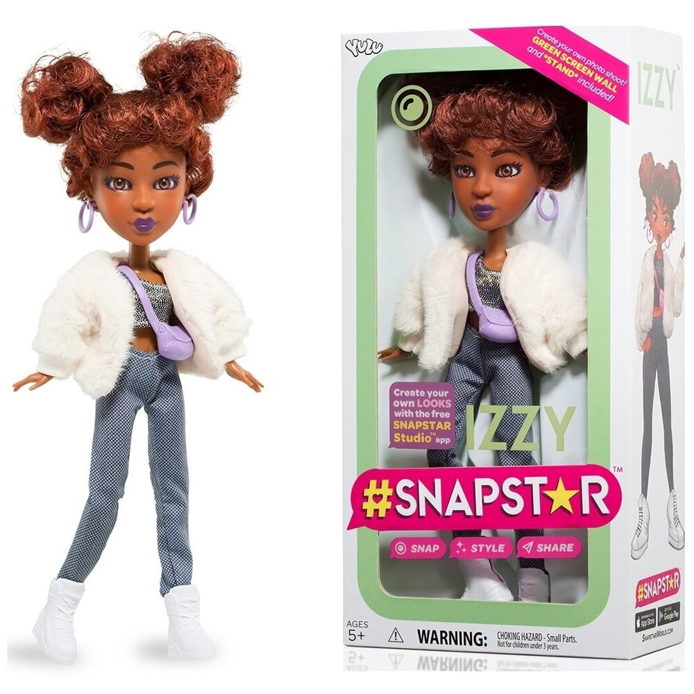 Иззи - это активная и веселая девушка, она настоящая рукодельница и довольно часто устраивает занятия по хэндмейду, удивляя подруг своими новыми идеями и творениями. Она очень бережно относится к природе и знает все о переработке отходов. Она уверена, что ненужных вещей не бывает и умеет создавать из ничего невероятные поделки. У Иззи свой яркий стиль и макияж. Она привыкла быть всегда в центре внимания, ведь она звезда "Инстраграм". Кукла SnapStar "Иззи" одета в модный наряд, у нее красивая смуглая кожа и выразительные глаза. У куклы очень подвижные конечности, поэтому она может принимать любые позы, а подставка позволит надежно зафиксировать куклу во время фотосъемок. Ведь эта кукла просто создана для проведения потрясающих фотосессий. Благодаря бесплатному приложению SnapStar Studio во время фотографирования зеленый фон может меняться на самые невероятные и удивительные фоны.