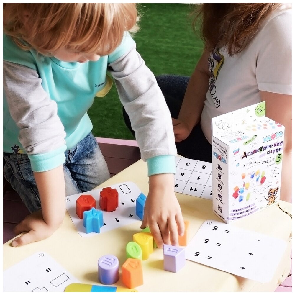 Дидактический набор 3 уровня сложности – это «высшая математика» для малышей. В комплект входят 12 фигурок разной формы и цвета и карточки с заданиями. Выполняя задания, малыш изучает форму и цвет, знакомится с цифрами и изучает счет, развивает логику. Занятия с небольшими фигурками помогут в развитии мелкой моторики.