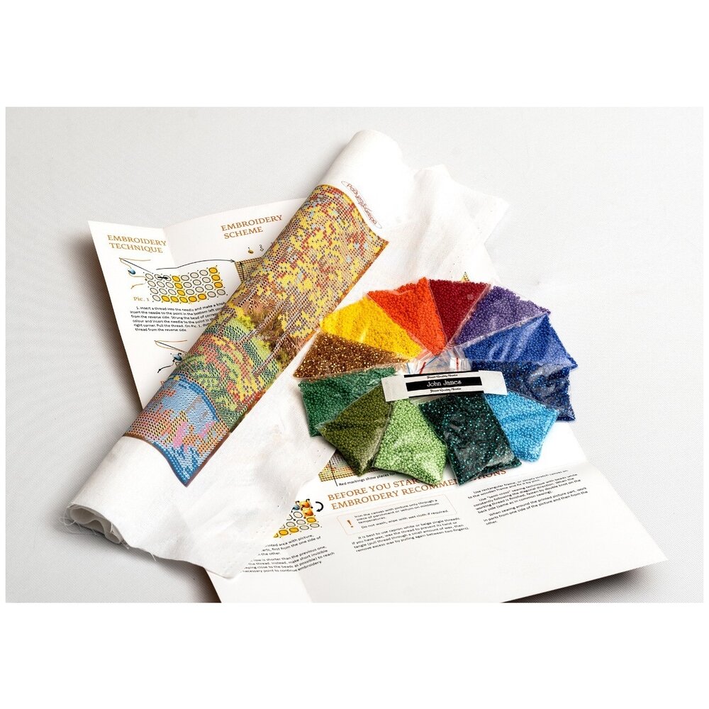 - Подробная комплектация Канва, ювелирный бисер, бисерная игла, цветная схема, инструкция