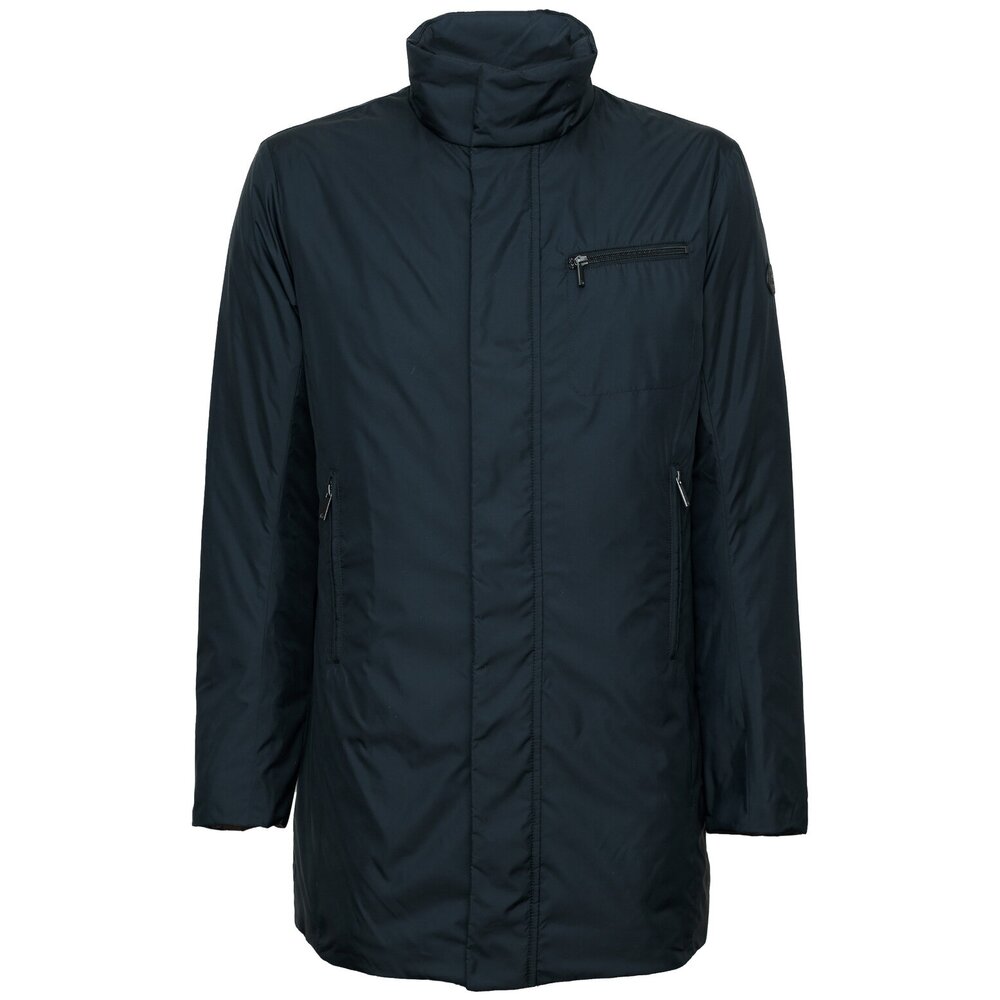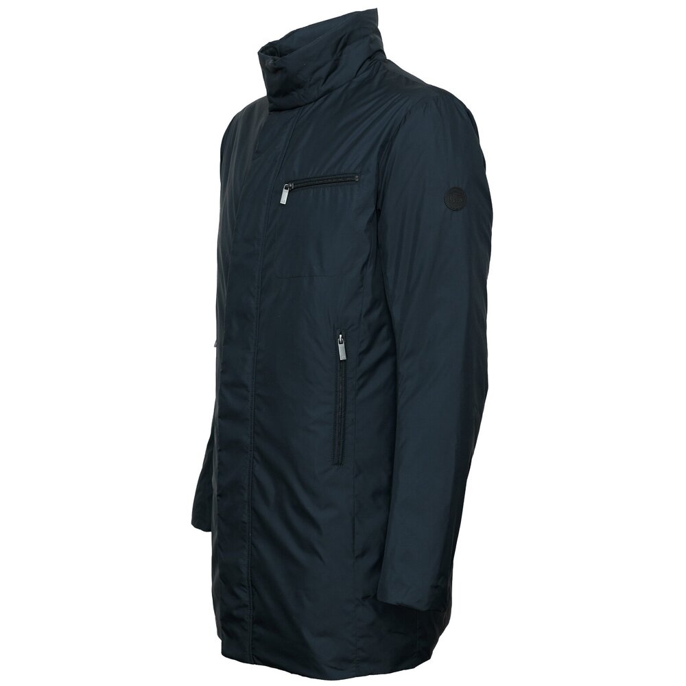 Утепленный плащ прямого силуэта без капюшона, из водоотталкивающего материала. Воротник - стойка. Застежка на молнии и ветрозащитный клапан на кнопках. Три наружных кармана с застежкой на молнии. Один внутренний карман с застежкой на молнии. Предусмотрена шлица. Стеганая подкладка. На левом рукаве фирменный логотип. В изделии использован высокотехнологичный утеплитель «SORONA» – теплосохраняющий материал на биологической основе, долго сохраняет тепло и легко восстанавливается. Отличный вариант для повседневной носки.Рекомендуемый температурный режим: от 5С до -5СДлина по спинке размер L: 85 см