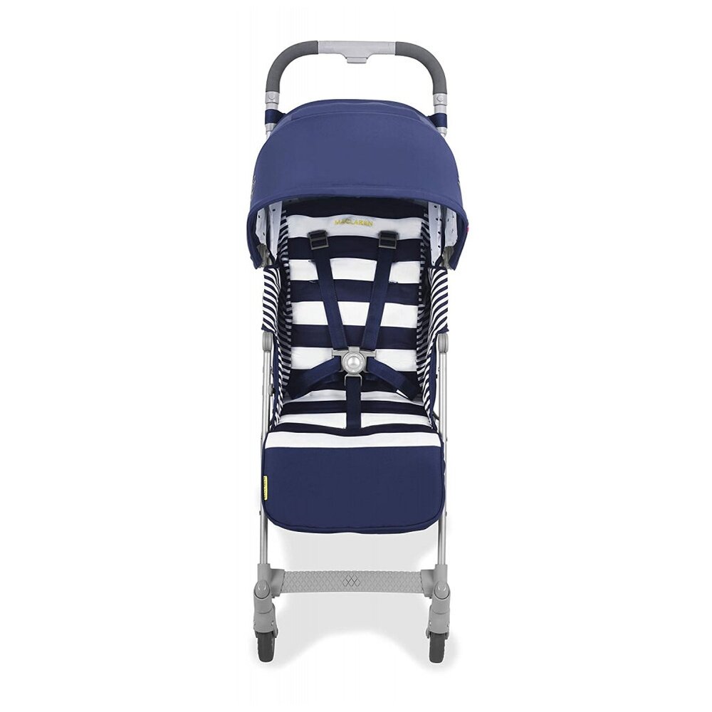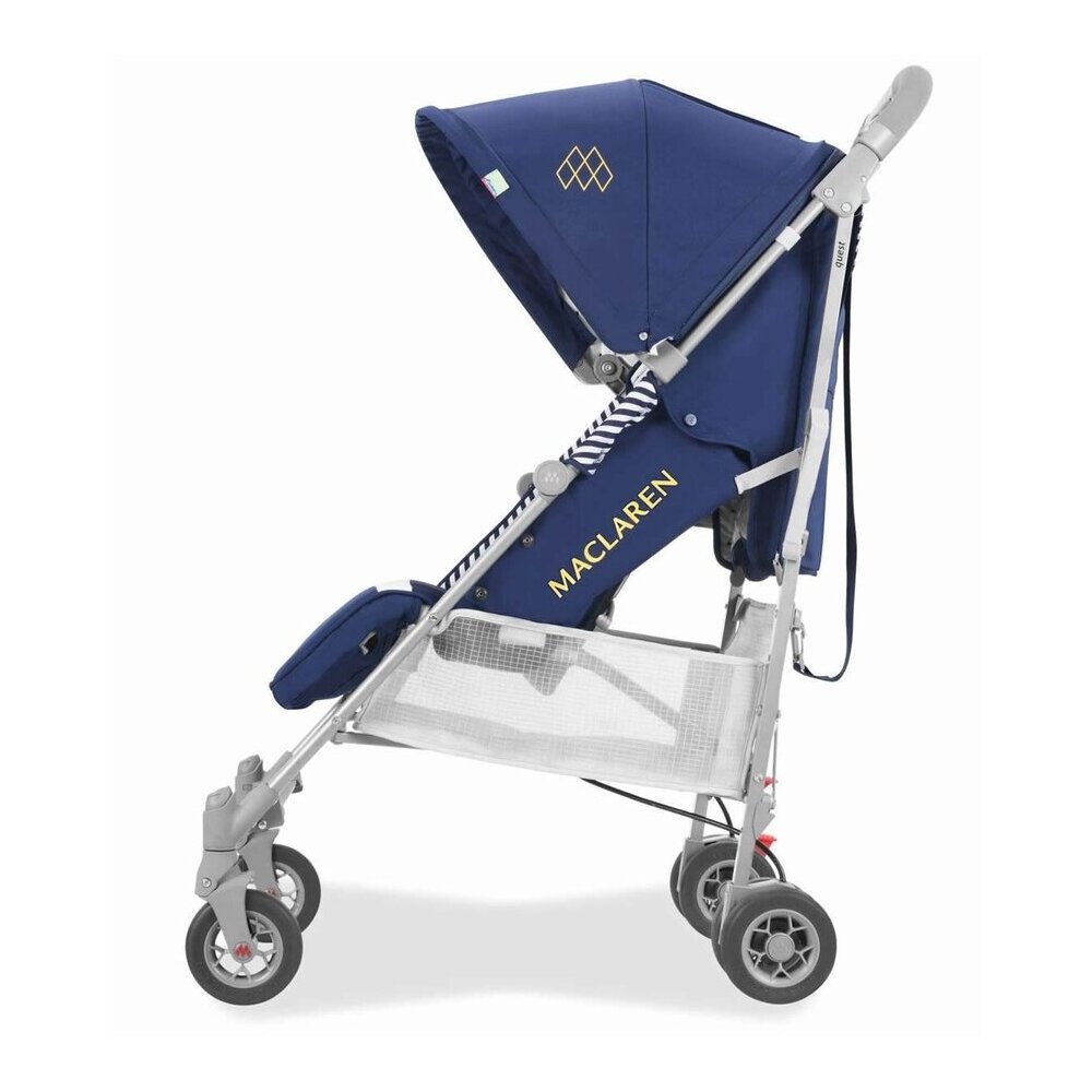 Прогулочная коляска Quest от Maclaren. Для малыша в этой коляске также все продумано: есть капюшон для защиты от излишнего солнца, от дождя спасет дождевик (входит в комплект), пятиточечные ремни держат крепко и надежно. Сидение коляски тканевое, имеет 4 положения наклона, включая полностью горизонтальное. Подножка регулируется, тем самым увеличивая спальное место. Также коляска оснащена сетчатой защитой для ножек (находится в кармашке под подножкой) и небольшой защитной вставкой для головы (находится за спинкой). Благодаря небольшой ширине (всего 45,5 см), а также поворотным колесам, с этой коляской просто гулять по узким улочкам или торговым центрам. Любое путешествие пройдет легко и беззаботно, если с вами такая легкая коляска-трость. Особенности: - легко складывается, удобная ручка для переноски и плечевой ремень - необычайно легкая коляска из высокопрочного алюминия - современный дизайн со светоотражающими полосами безопасности - поворотные передние колеса с блокировкой - сплошная ручка - ножной тормоз на задние колеса, приводится в действие одним нажатием - наклон спинки регулируется одной рукой - 4 позиции и 5-ти точечный ремень - в комплекте с петлей на руку, козырьком от солнца и дождевиком - концы всех пластиковых деталей ремня закруглены (комфортней для ребенка) - 4 положения сидя с углом наклона до 180° аХарактеристики: е- очень длинное спальное место - максимальный вес ребенка: 25 кг - можно использовать для малышей младше 6 месяцев - спинка переставляется одной рукой - подножка легко раскладывается - встроенный защитный сетчатый барьер - мягкая защитная вставка для головы - поворотные передние колеса с блокировкой - регулируемый по высоте 5-точечный ремень безопасности - съемный моющийся чехол на сиденье - усовершенствованные эргономичные ручки - рама складывается за 5 секунд - водонепроницаемый тент со светоотражающими элементами - козырек от солнца: компактно складывается, легко крепится и снимается - смотровое окошко с отражателями с UV-фильтром - рама из высокопрочного алюминия - ручка для переноски - плечевой ремень для ношения сложенной коляски через плечо иРазмеры: о- в собранном виде (дхшхв): 62х45,5х104 см - в сложенном виде (дхшхв): 104х34х27 см - высота ручек: 104 см - ширина шасси: 45,5 см - размеры сидения, без учета спинки и подножки (дхш): 20х32 см - высота спинки: 48 см - длина спального места с подножкой: 81 см сВ комплекте: а- дождевик - ремешок на руку - инструкция